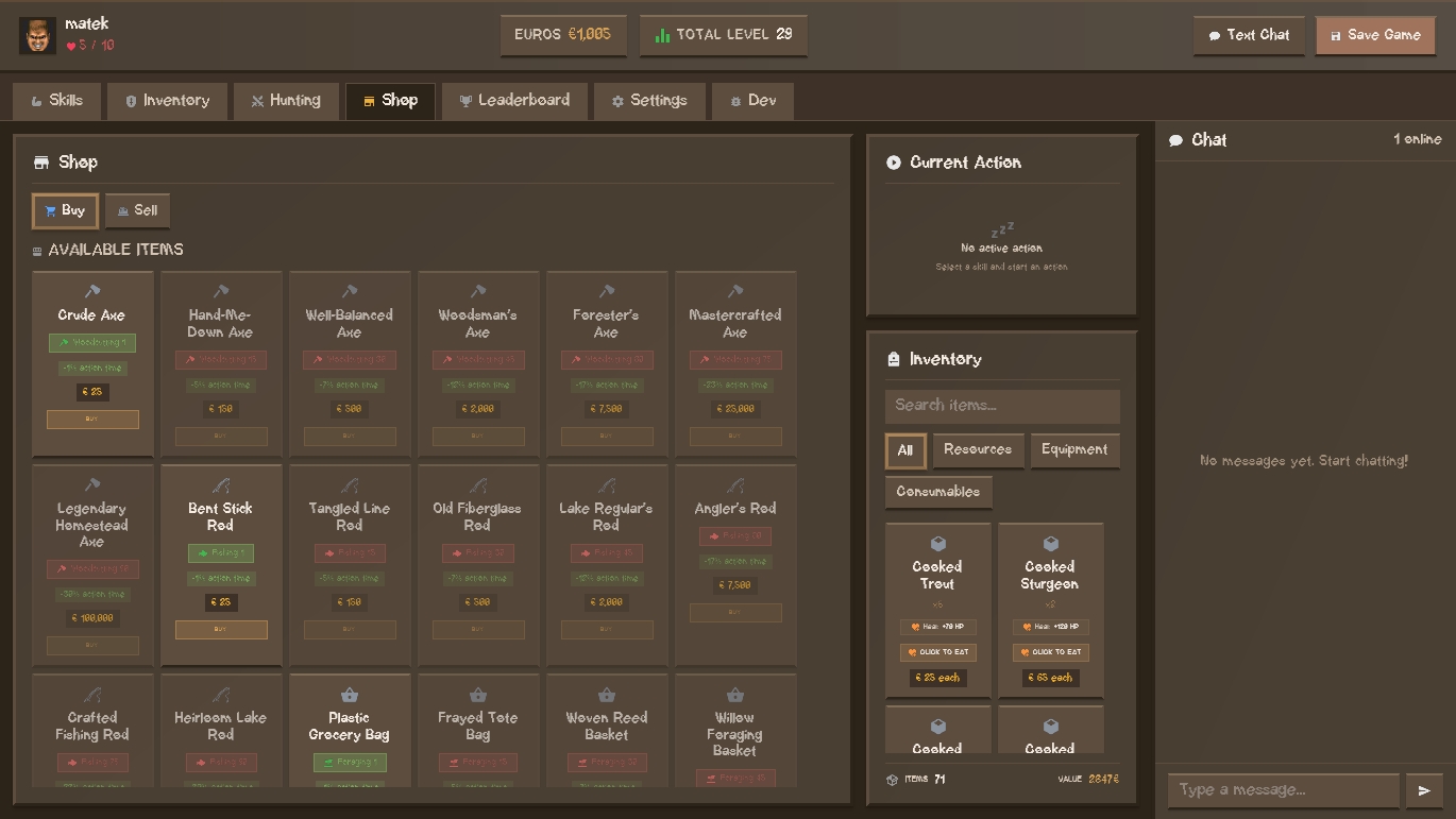 Escape to your summer cottage in My Summer Spent Idling. This relaxing idle RPG where every choice shapes your carefree life. Fish in rivers and the shore, forage for wild ingredients, chop wood, brew your own beer, and manage your resources as you progress. With dozens of skills to master and a charming, cozy interface, every day is an opportunity to relax, experiment, and enjoy the simple pleasures of cottage life. Idle, automate, and watch your summer life flourish, whether you’re actively playing or just letting time pass by.