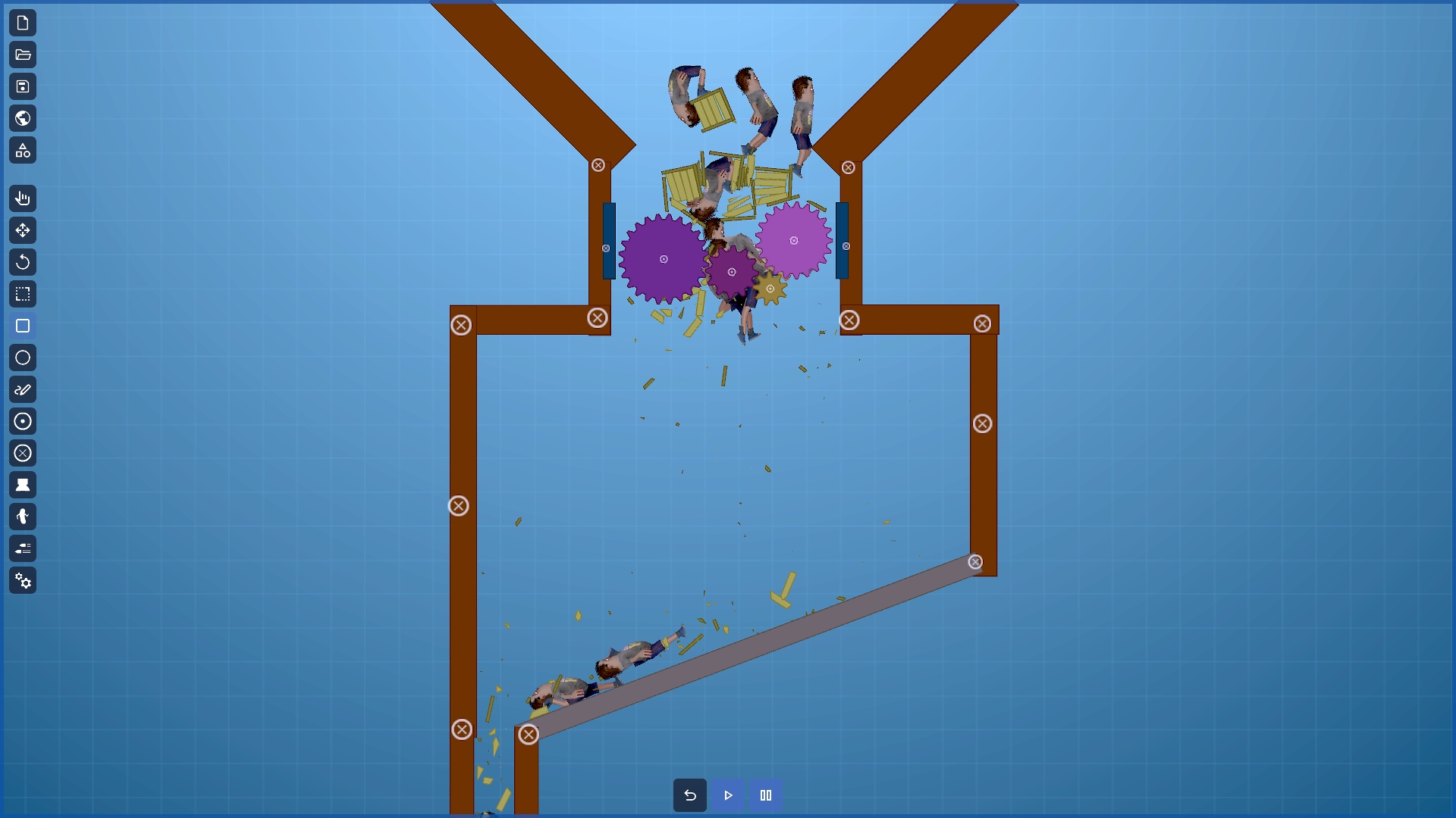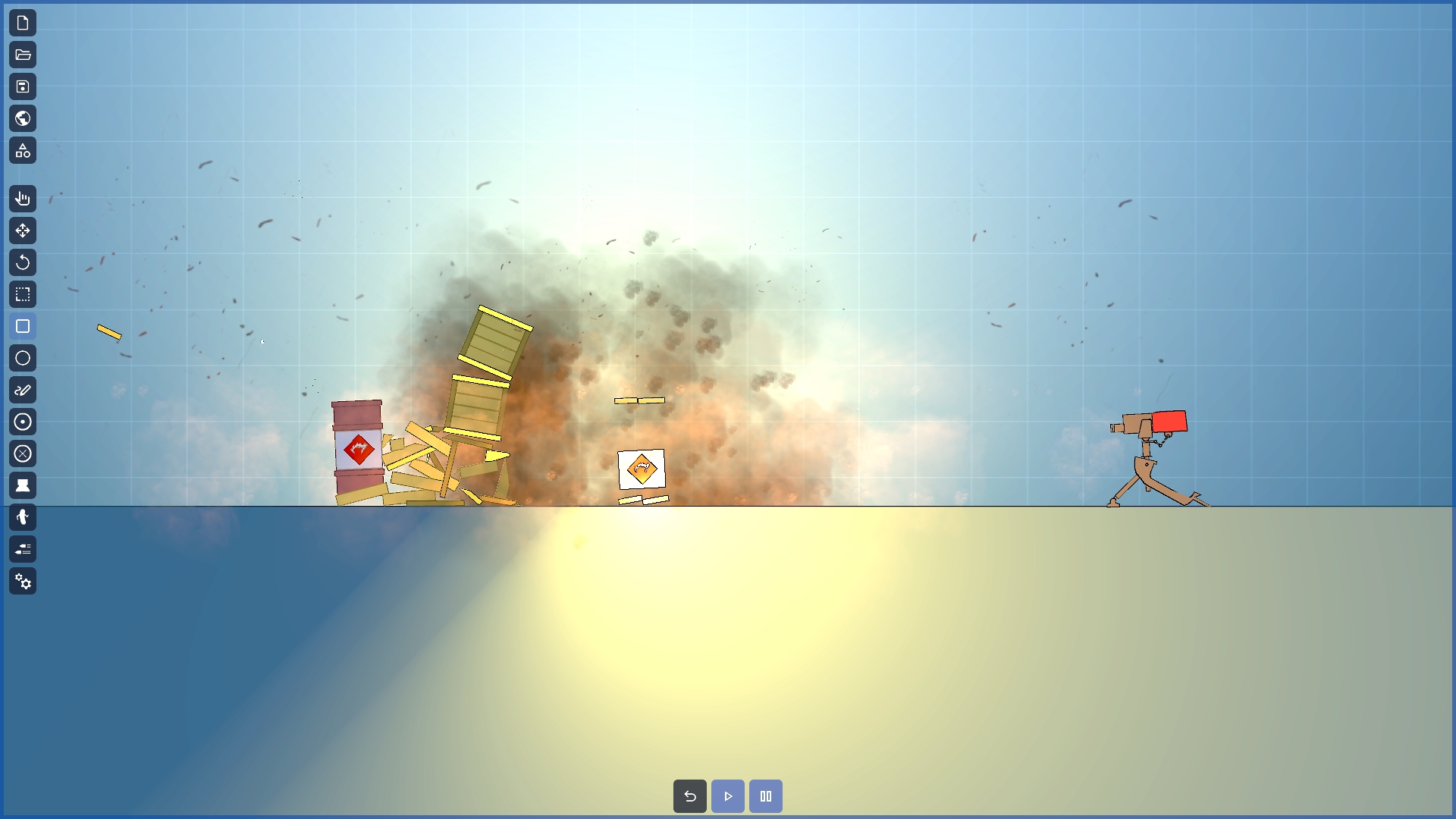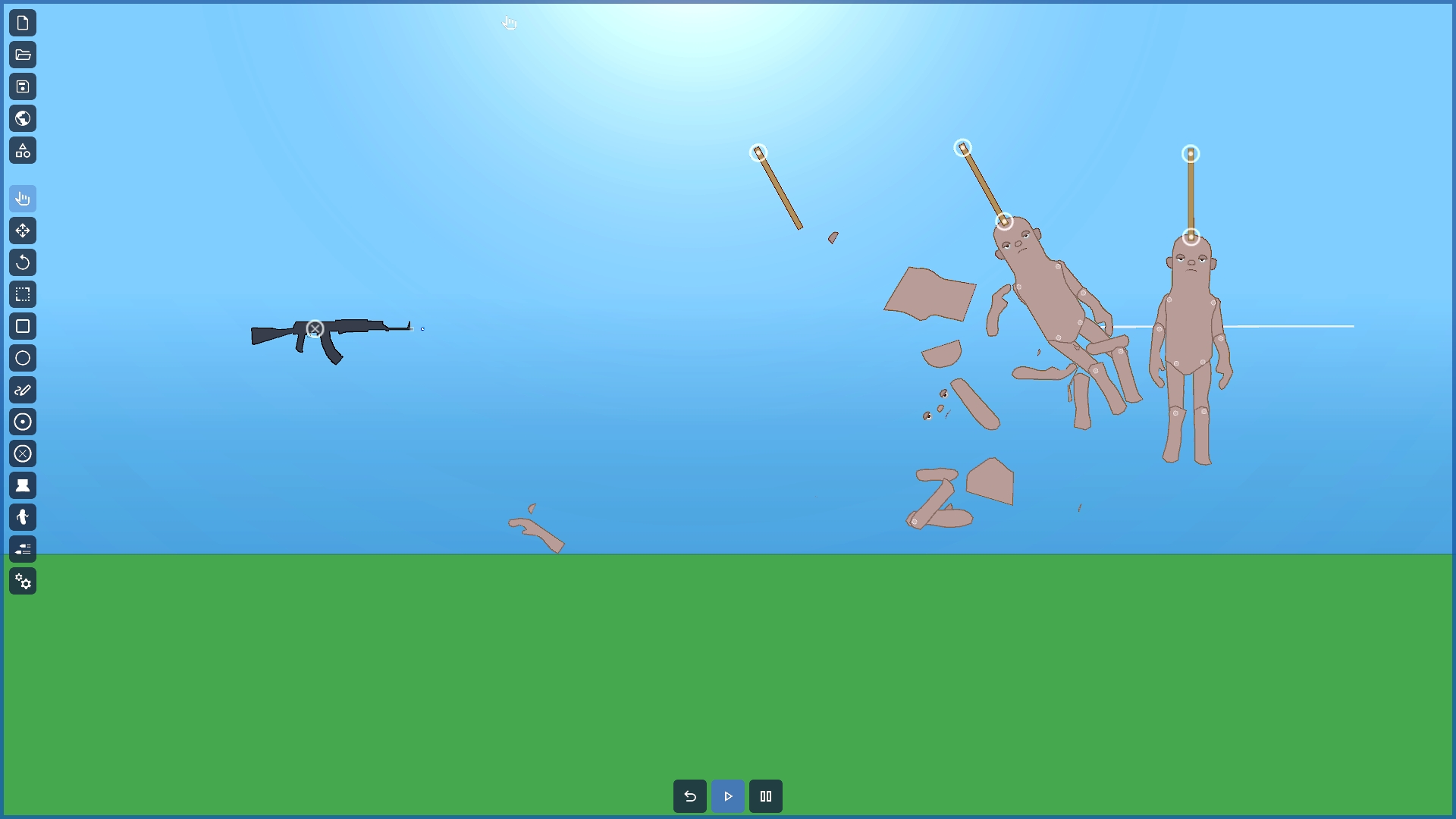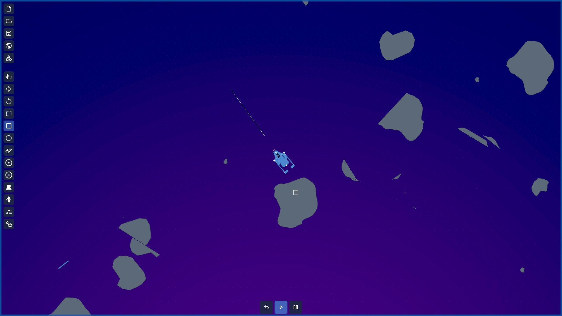 A 2d physics sandbox game where the environment is drawn or created with primitive shapes. By using a set of tools you will be able to bring the scene to life by adding engines, thrusters, making your machines behave as you want.