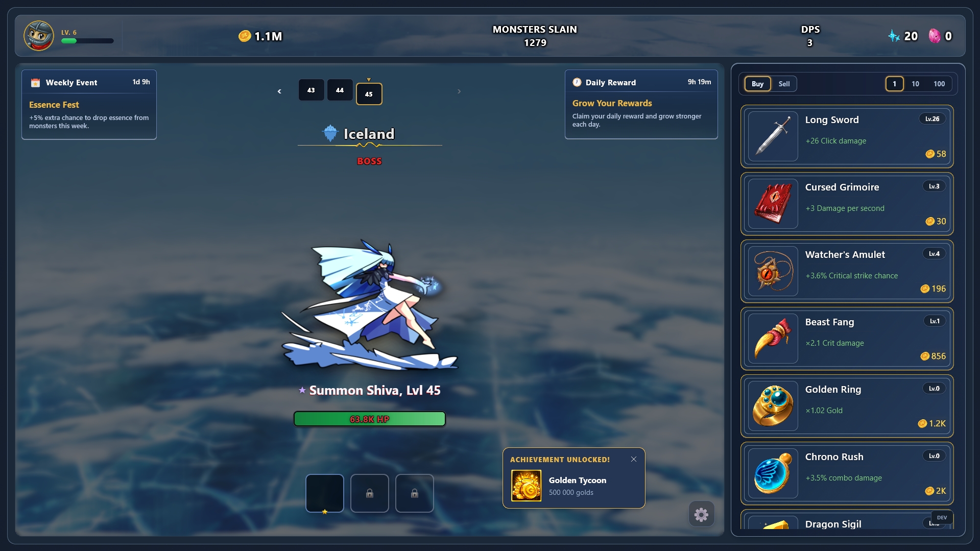 Kill monsters, earn gold, upgrade your power. Simple clicker with endless progression