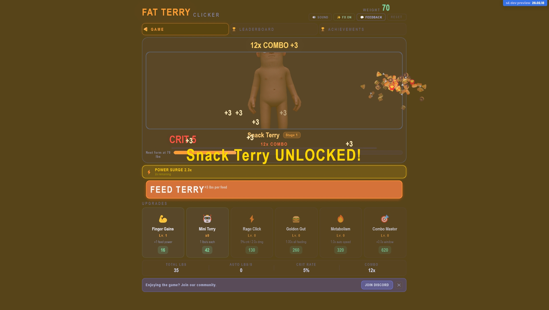 Start with a skinny, unimpressed Terry and feed him everything from burgers to absurd high-tech calorie cannons. Unlock: