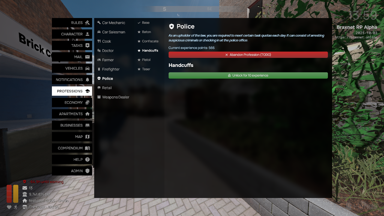 I have started working on implementing a player police system. It builds on professions, and you can have two active at the same time.