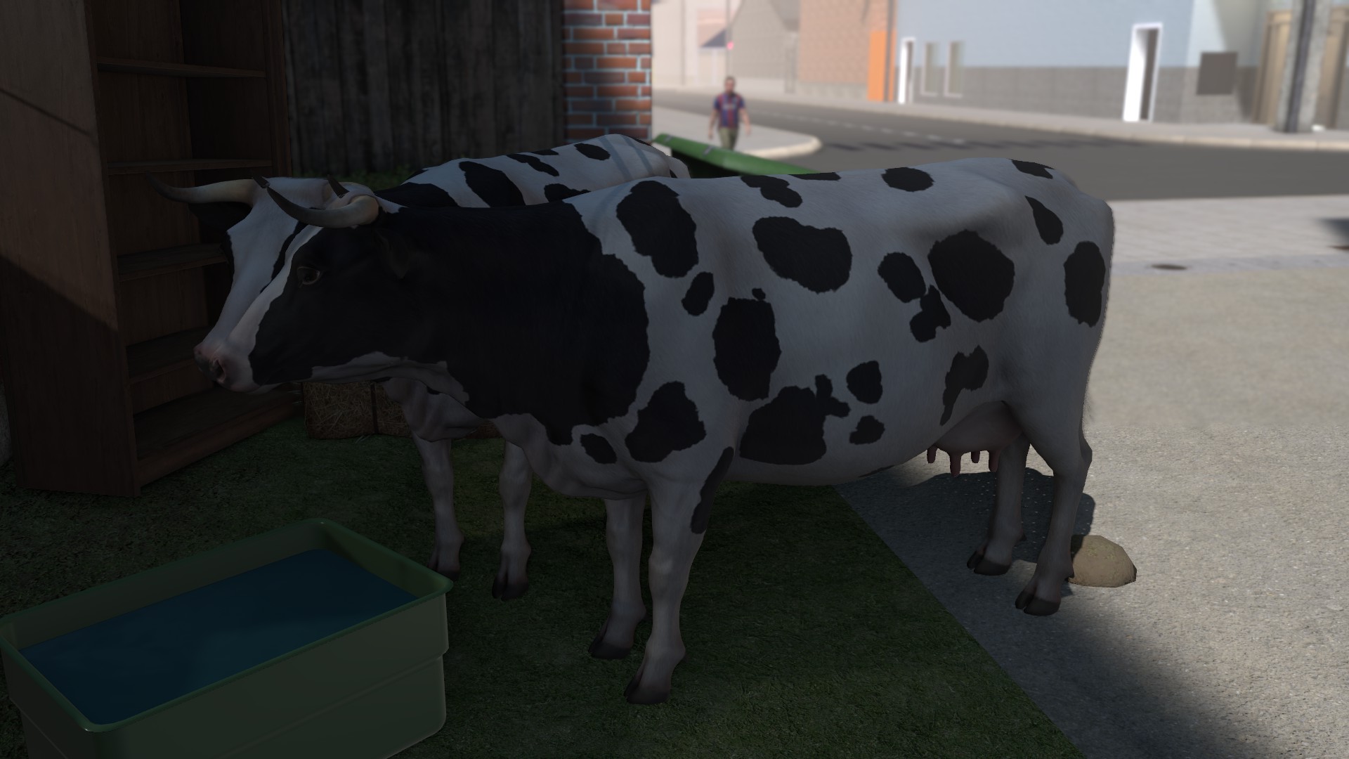 At the moment of writing there's a labrador dog, a cow, and a chicken. The latter two produce fitting items. Poop can be crafted into fertilizer.