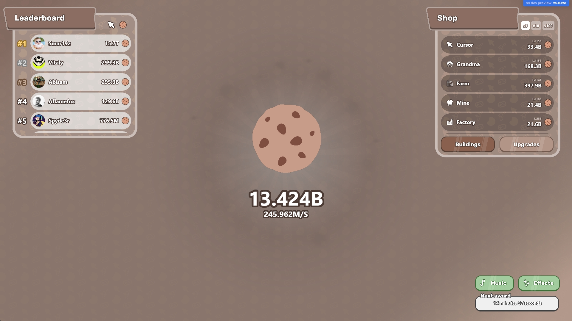 The aim of the game is to produce as many cookies as possible by clicking on a cookie or automating production.