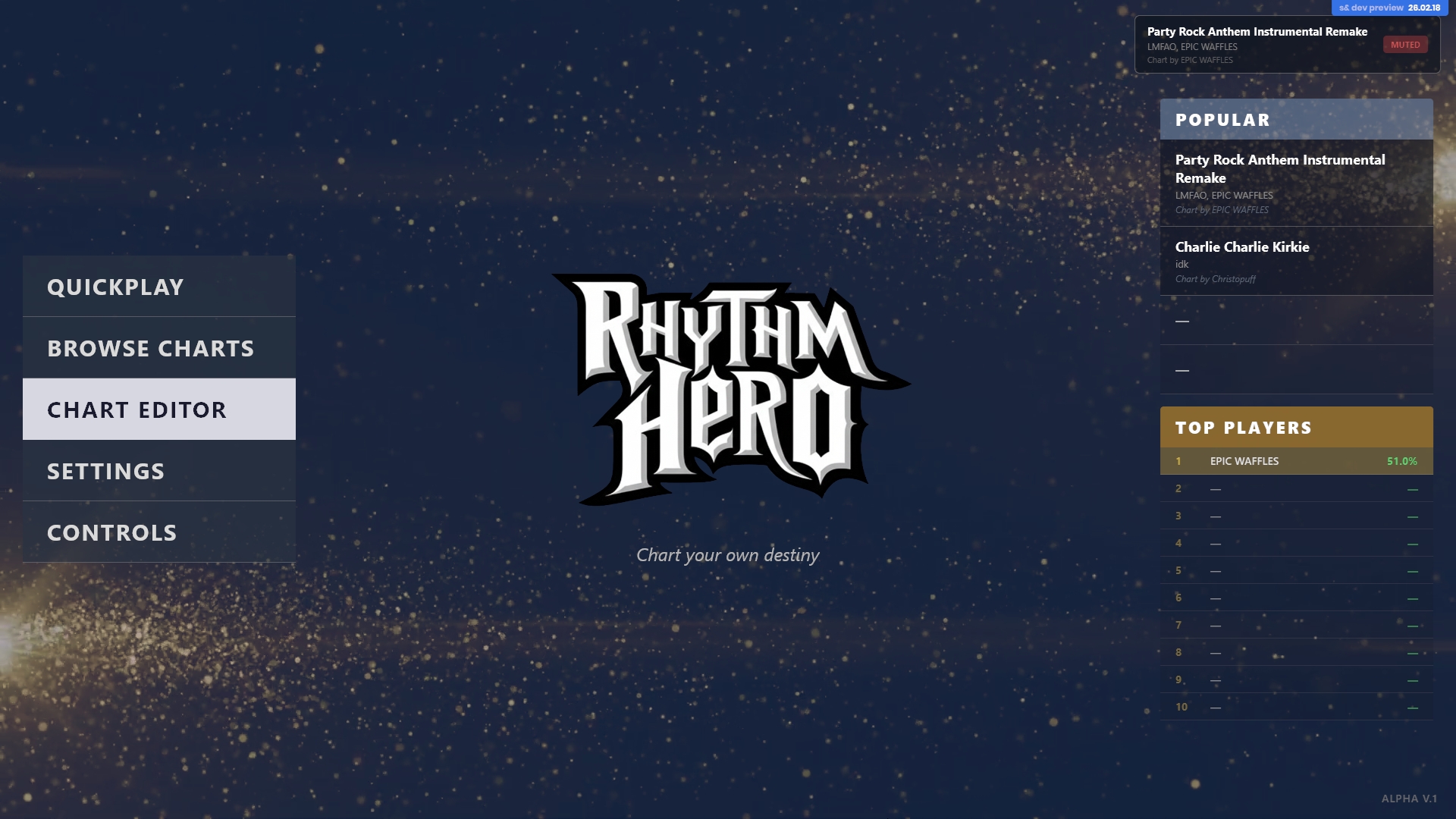 Rhythm Hero is the ultimate community-powered rhythm game where your music journey is only limited by your imagination. Shred through a ever growing library of custom player made charts, climb global leaderboards. Create and share your own tracks with the powerful built-in chart editor, no experience required!