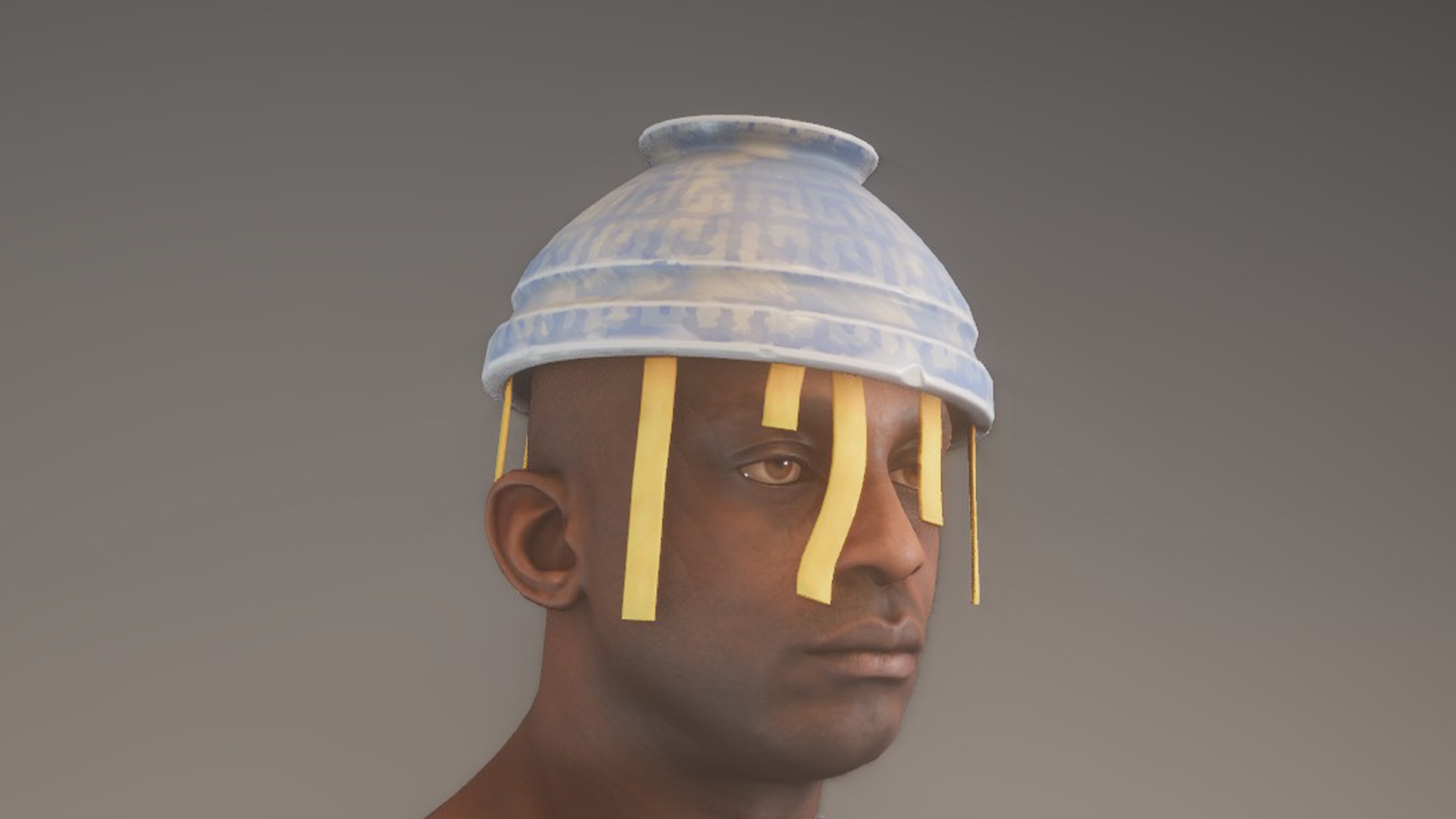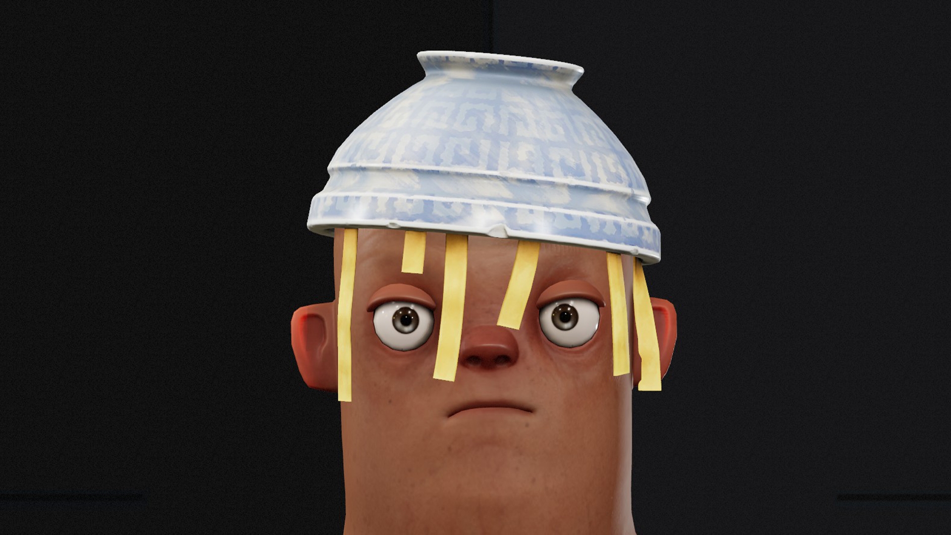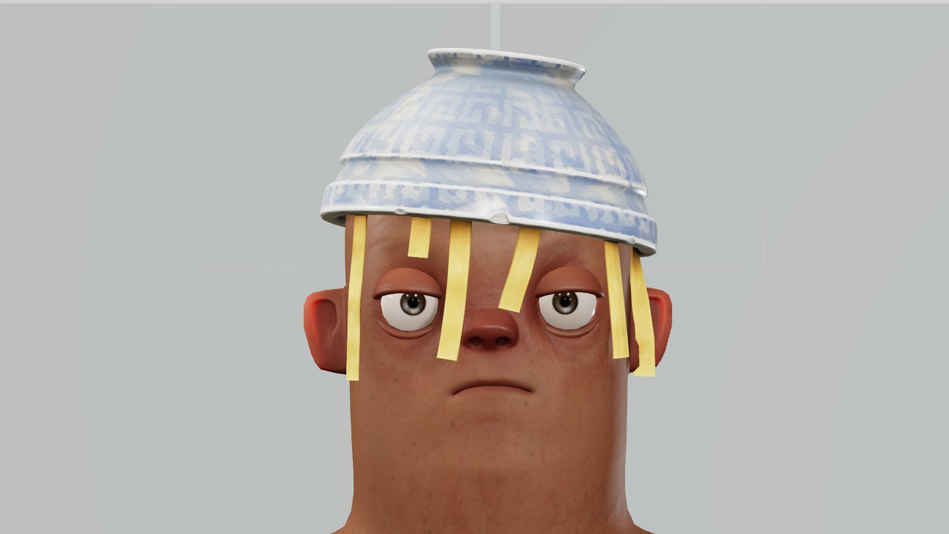 A bowl with a sphaggetti... used as a hat