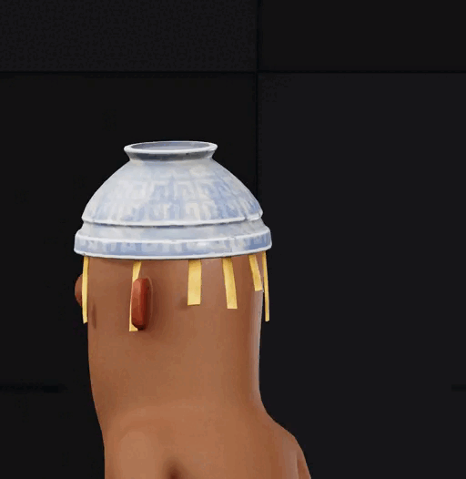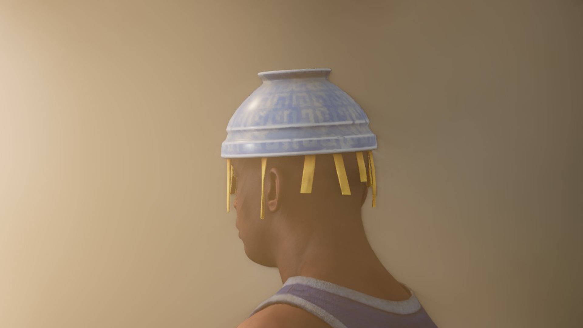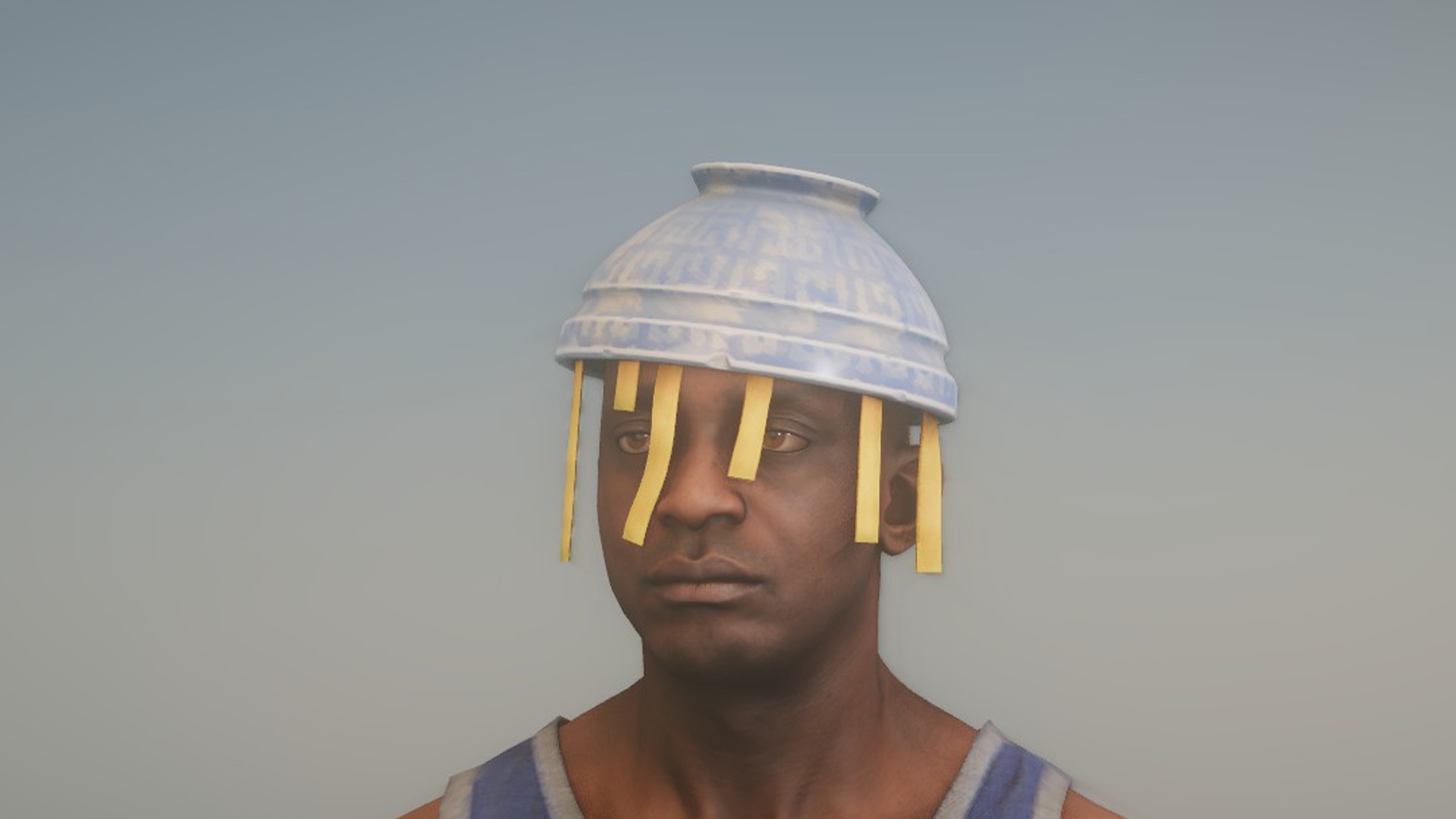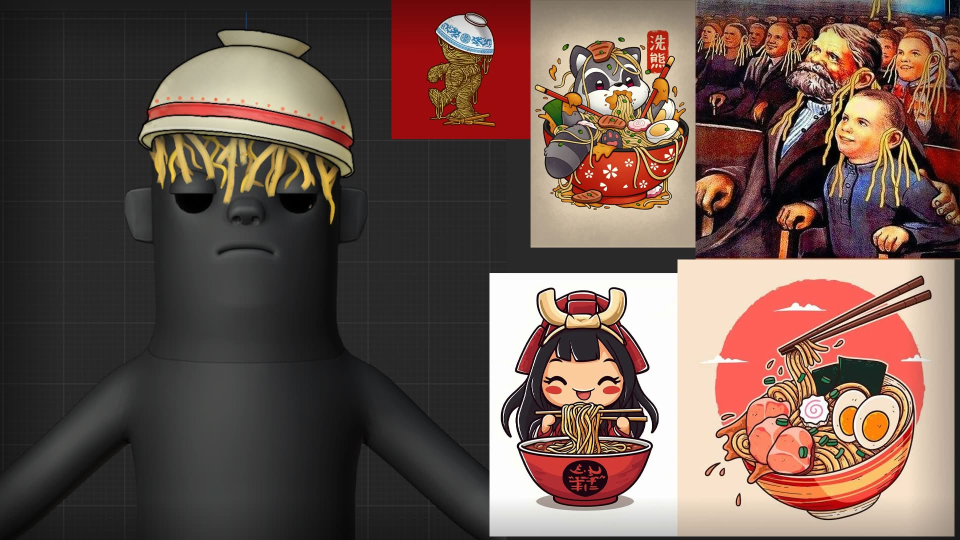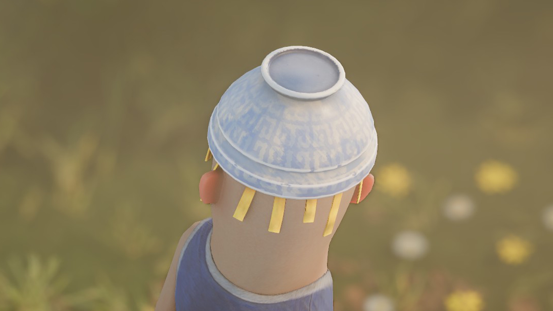 A bowl with a sphaggetti... used as a hat