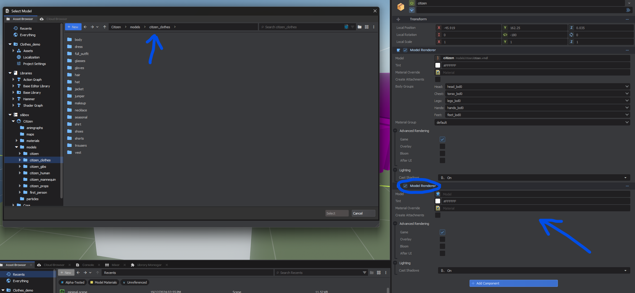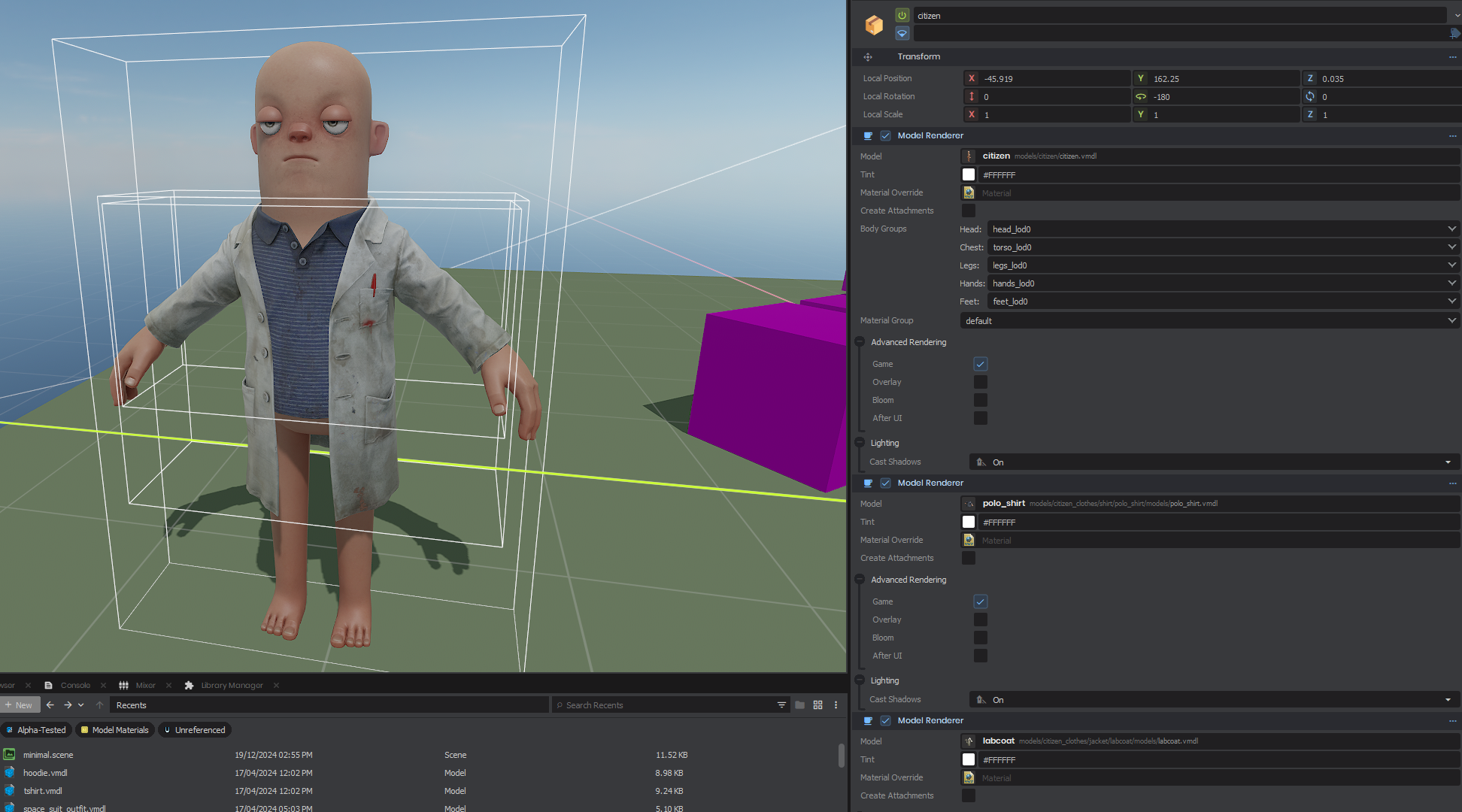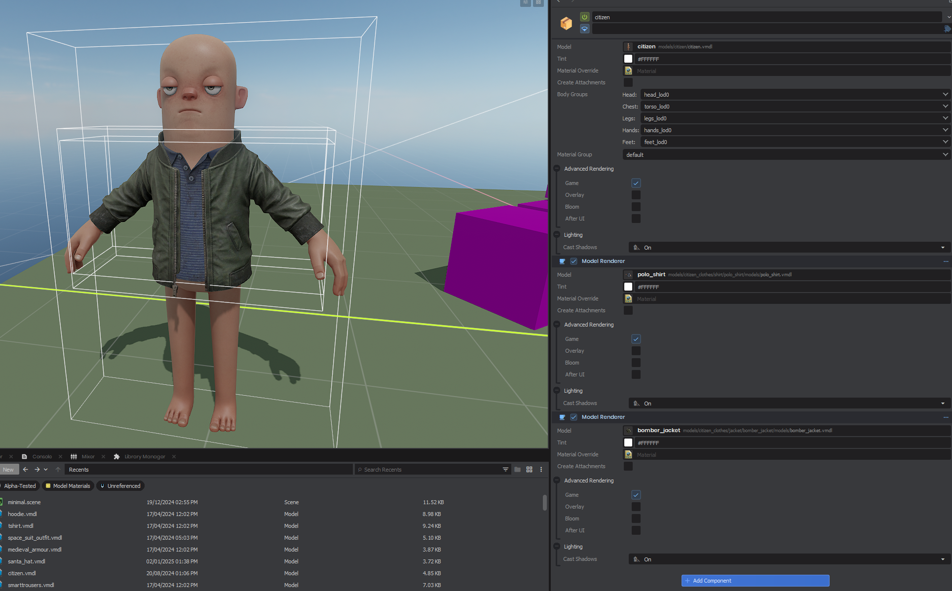 Head to citizen\assets\models\citizen and click on Citizen.vmdl. Now we have the citizen in our scene to start dressing and testing our clothing.