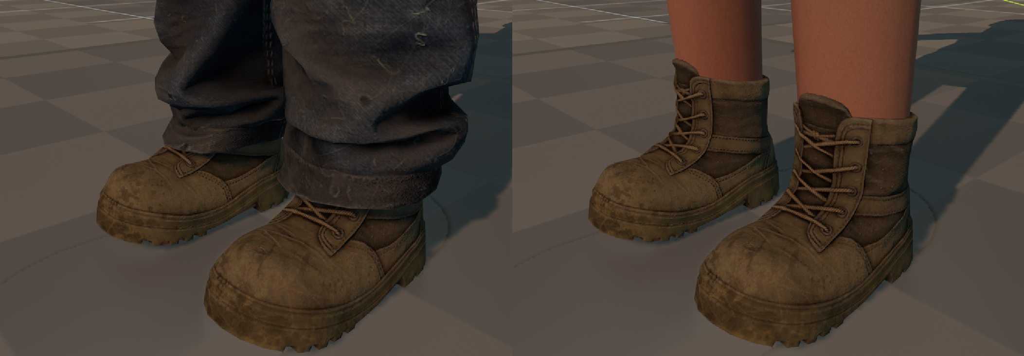 A great way of making sure your clothing is fitting with the existing clothing, In your S&box project, place your clothing in a scene and add other existing clothing to check for clipping issues.