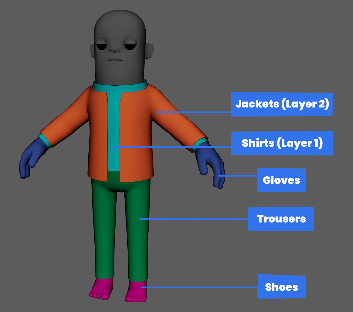 For Full-Body Outfits that completely fill the character, the clothing takes up both Layer 1 and Layer 2, since it filling both spaces.