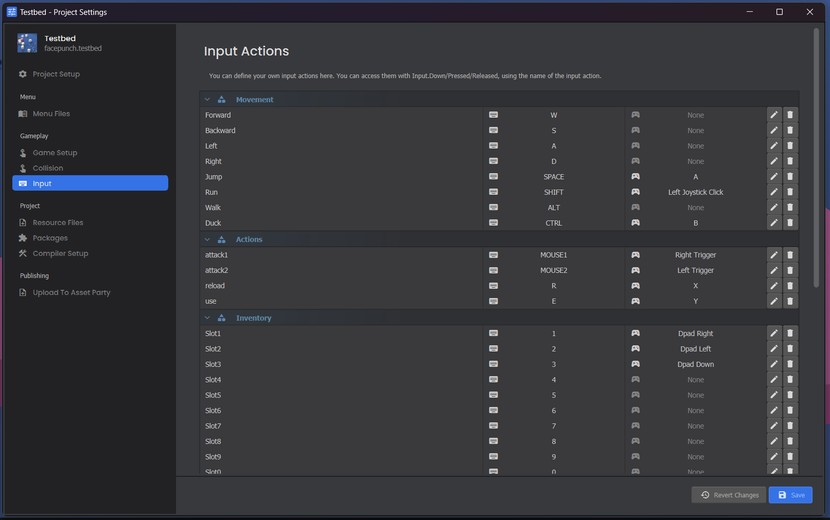 You can customize the keys for your game in the Project Settings.