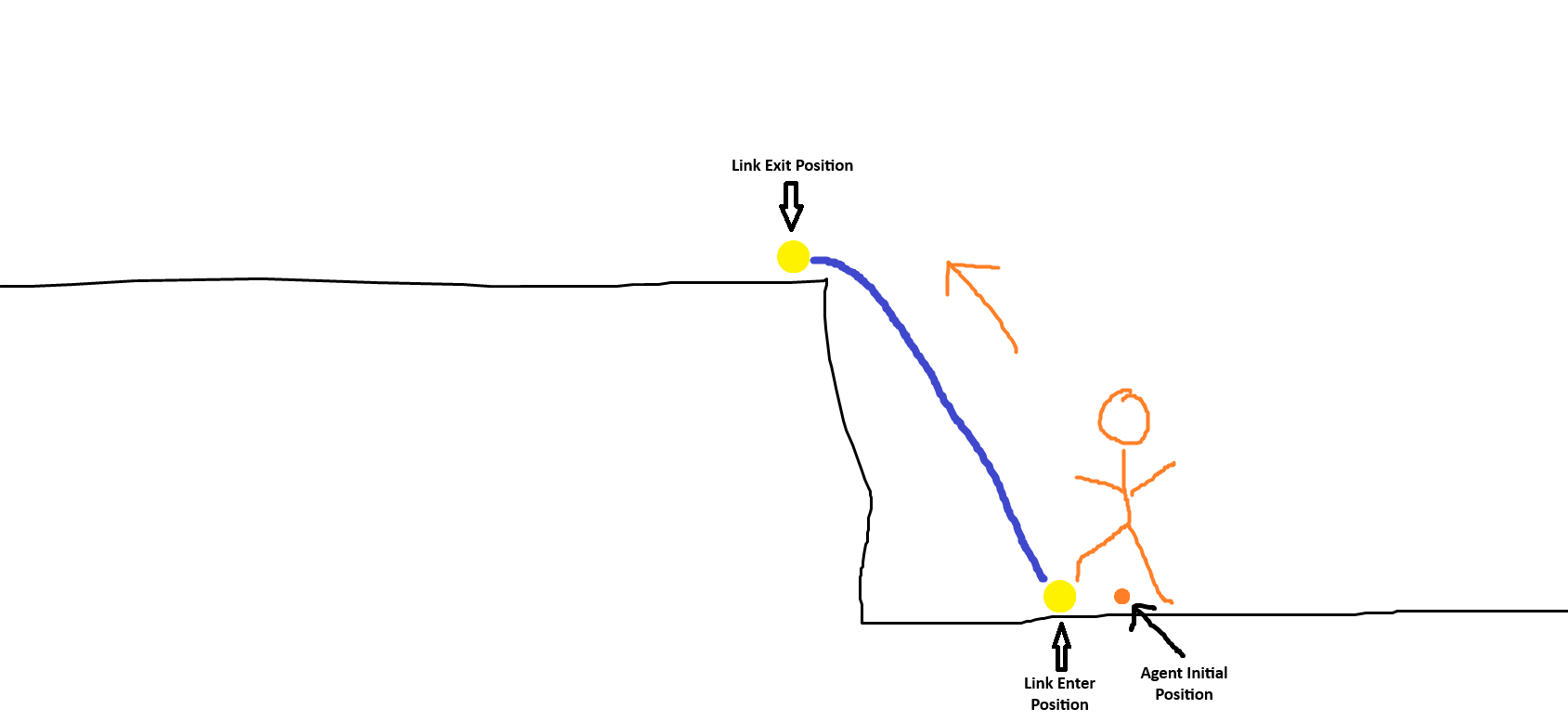 In this example we crate a custom link component that overrides OnLinkEntered. The component then drives a simple parabolic jump for the agent using the data from Agent.CurrentLinkTraversal.