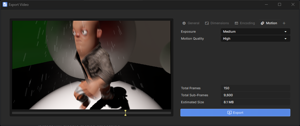 Use this to control how many sub-frames are rendered for every final output frame. This will greatly affect how long it takes to render your project, so you can set this to Low when previewing an export to save a lot of time.