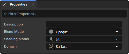 - Surface - Used for any materials that will be used on 3D Objects placed within your scene. Can have a set Shading Model.