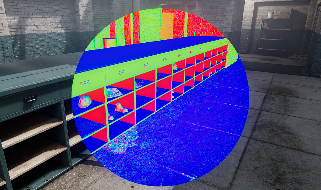 It contains minimal information about the object before we do the lighting pass, like it's Normals and Roughness, it can be used in post-processing to do all sorts of effects like accurate Ambient Occlusion and Screen-Space Reflections