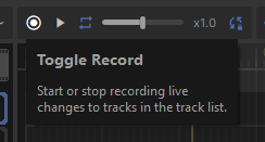 After that, enter play mode and press the Toggle Record button. Any changes to properties bound to tracks will get recorded directly to your movie. When you're done, hit the Toggle Record button again.
