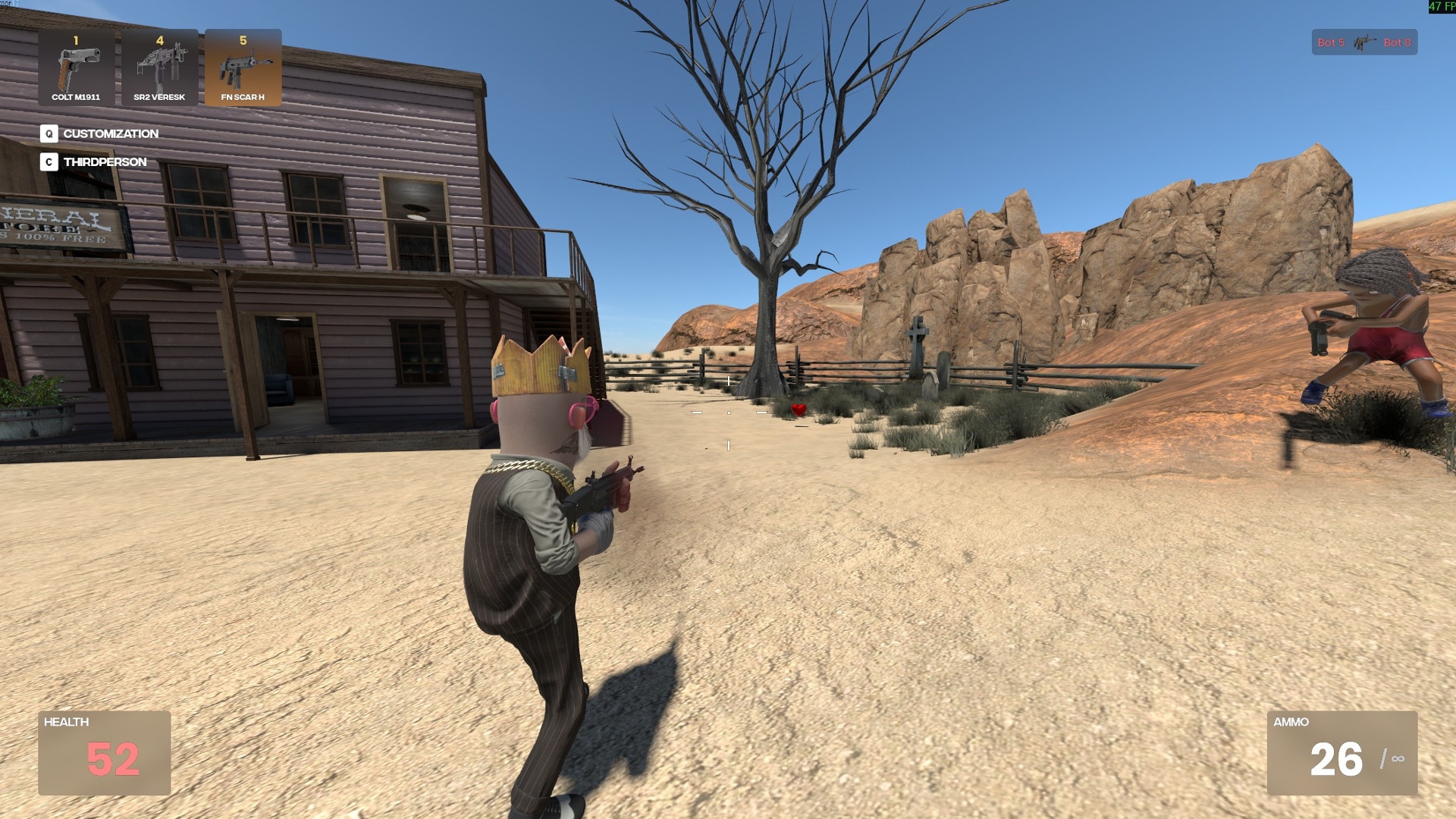 Simple Multiplayer Shooter (First and Third Person) with bots and Weapon Pickups