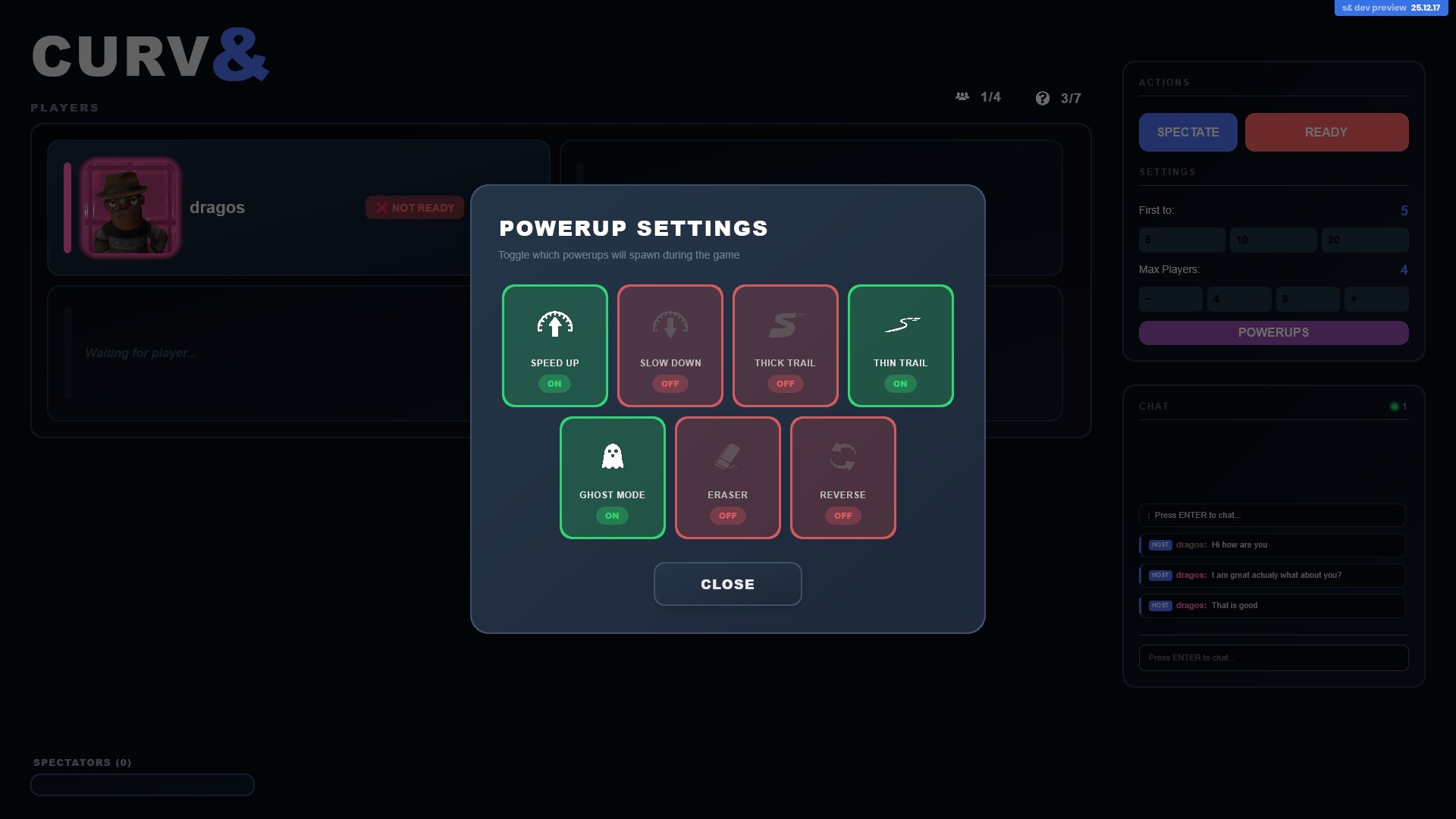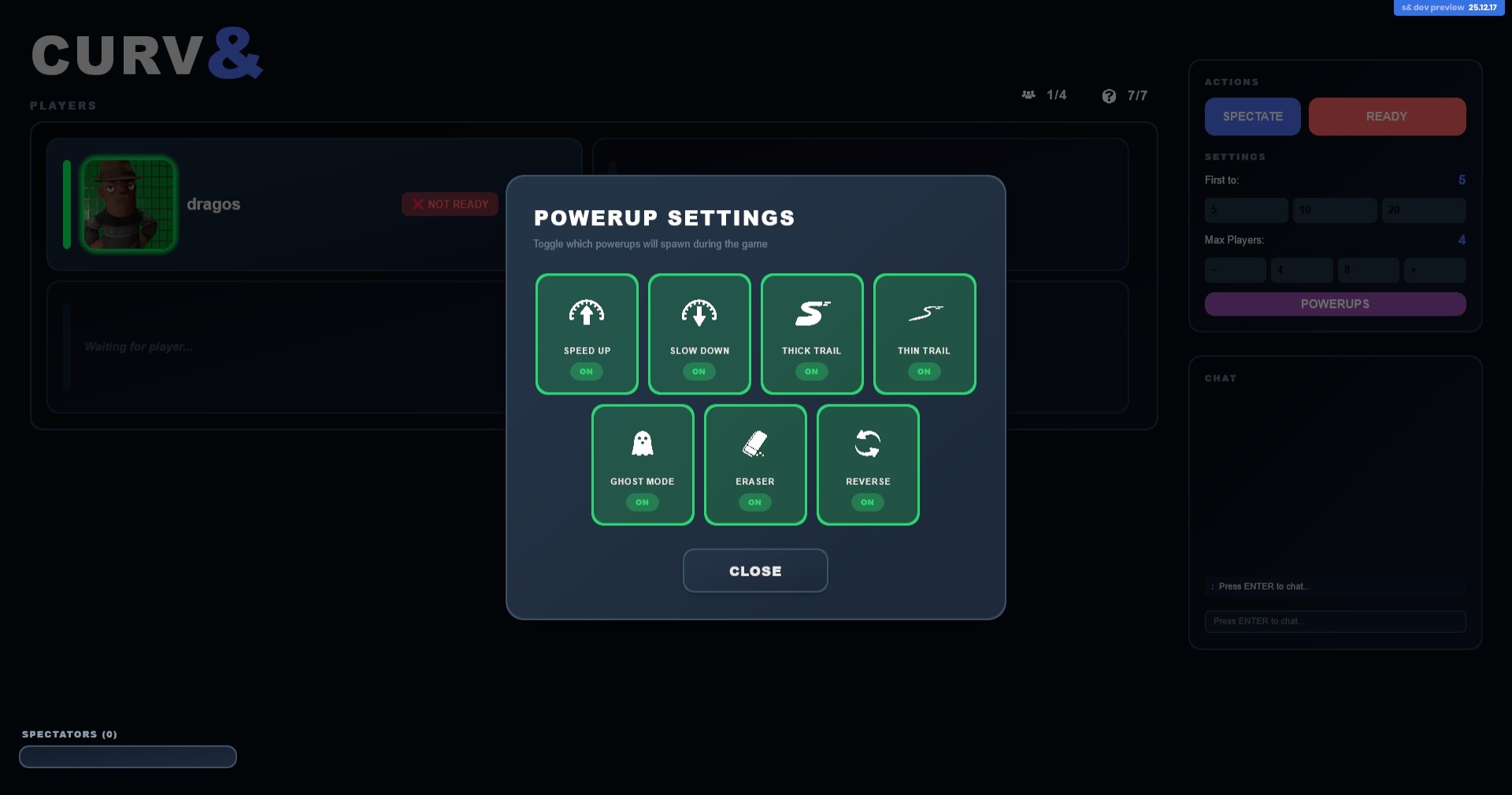 - Powerups: Active powerups can be enabled or modified to change how matches play out.