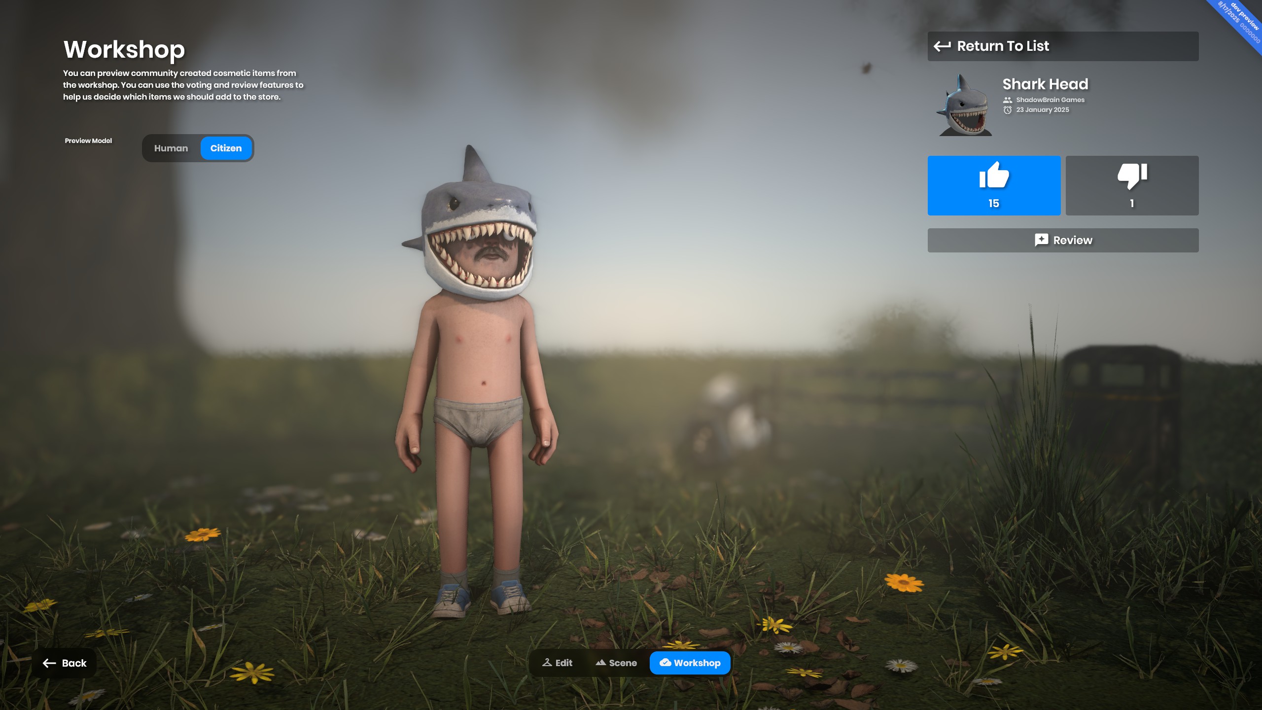 Example: As Shadowbrain (of shark head fame) pointed out here, one of the cosmetics in the workshop has some layering issue If no artist is present during the process, this would go unnoticed and sold to customers, so in general it is just worth having an artist look them over and give the ok.
