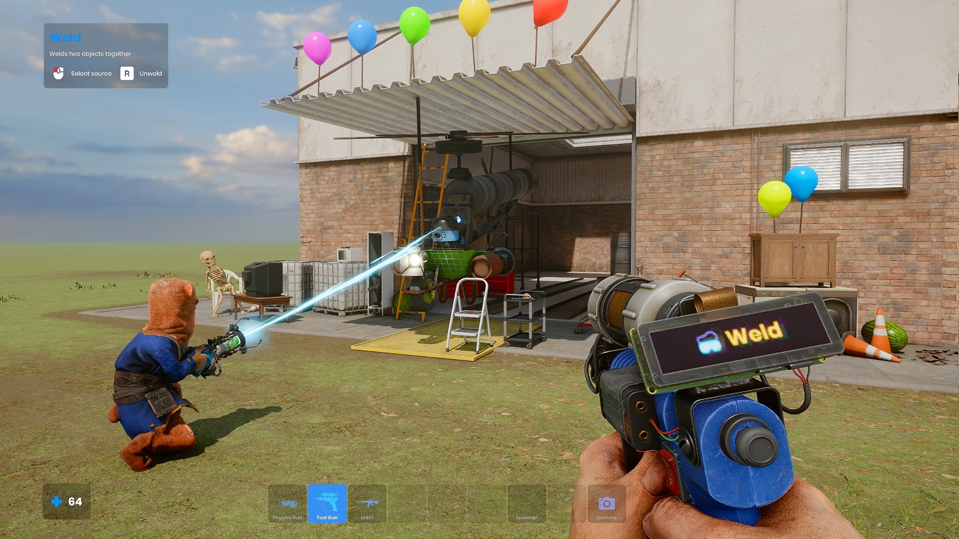 - Use your Toolgun to weld pieces together, add wheels, thrusters, balloons, hydraulics and more!