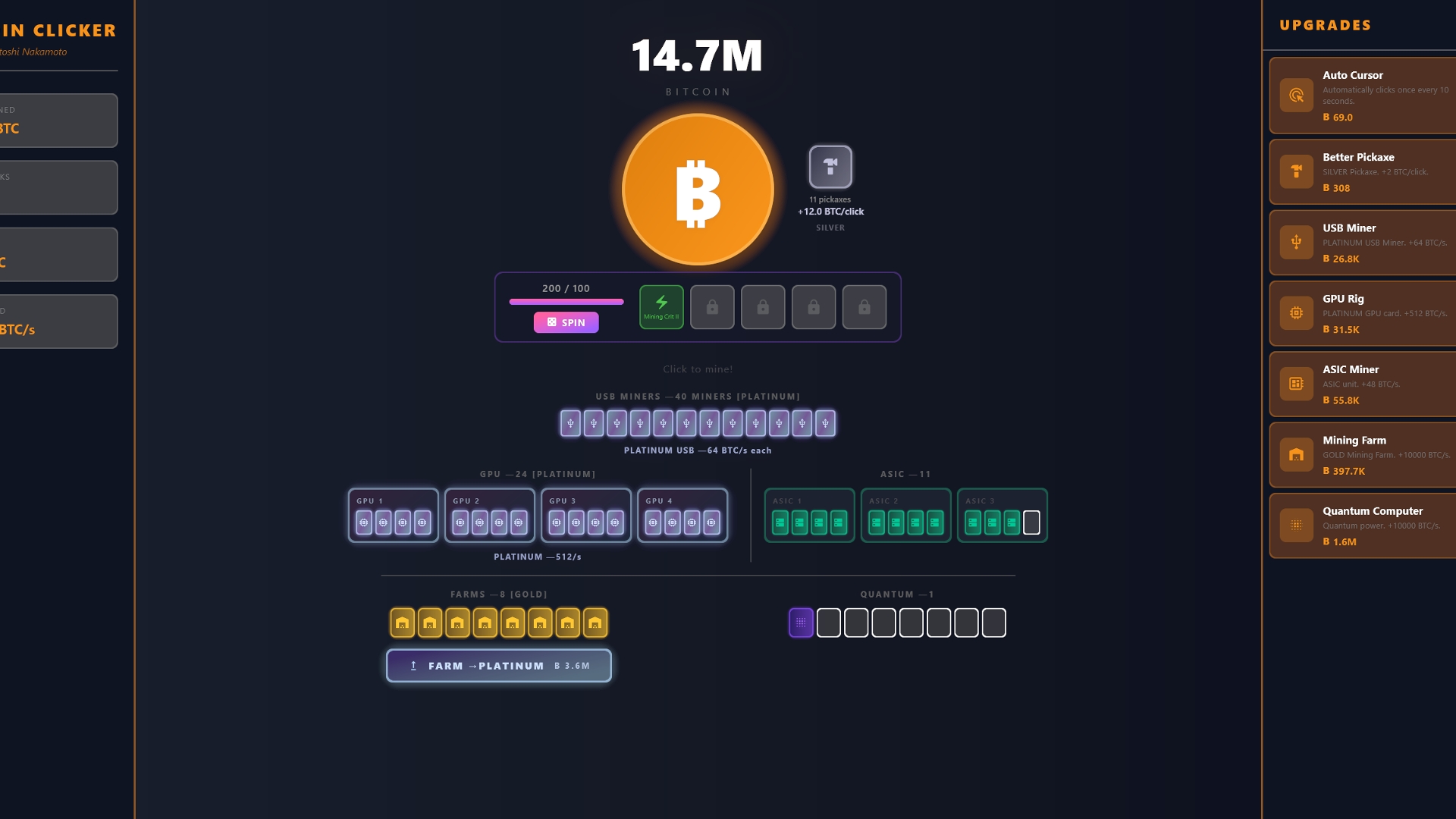 Bitcoin Clicker is a simple and addictive game where you tap the Bitcoin to earn coins. The more you click, the more currency yo