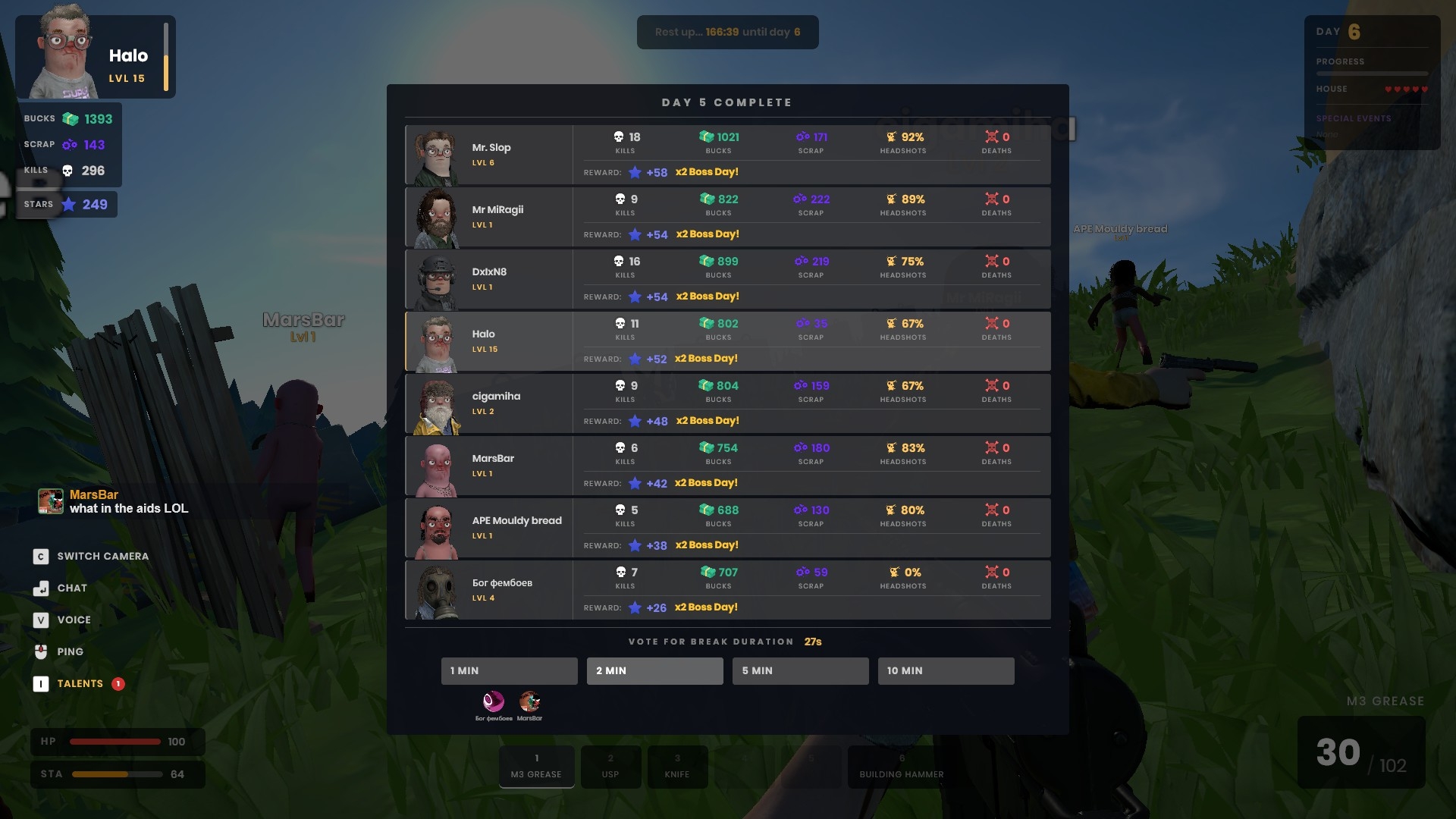 ☕ Vote for Your Break Between days, your team votes on break duration. Use the time to buy ammo, repair fences, reposition turrets, and prepare for what's next.