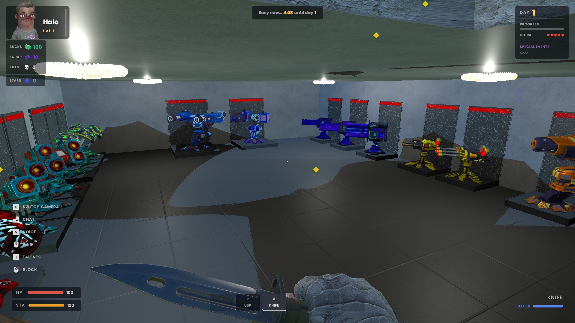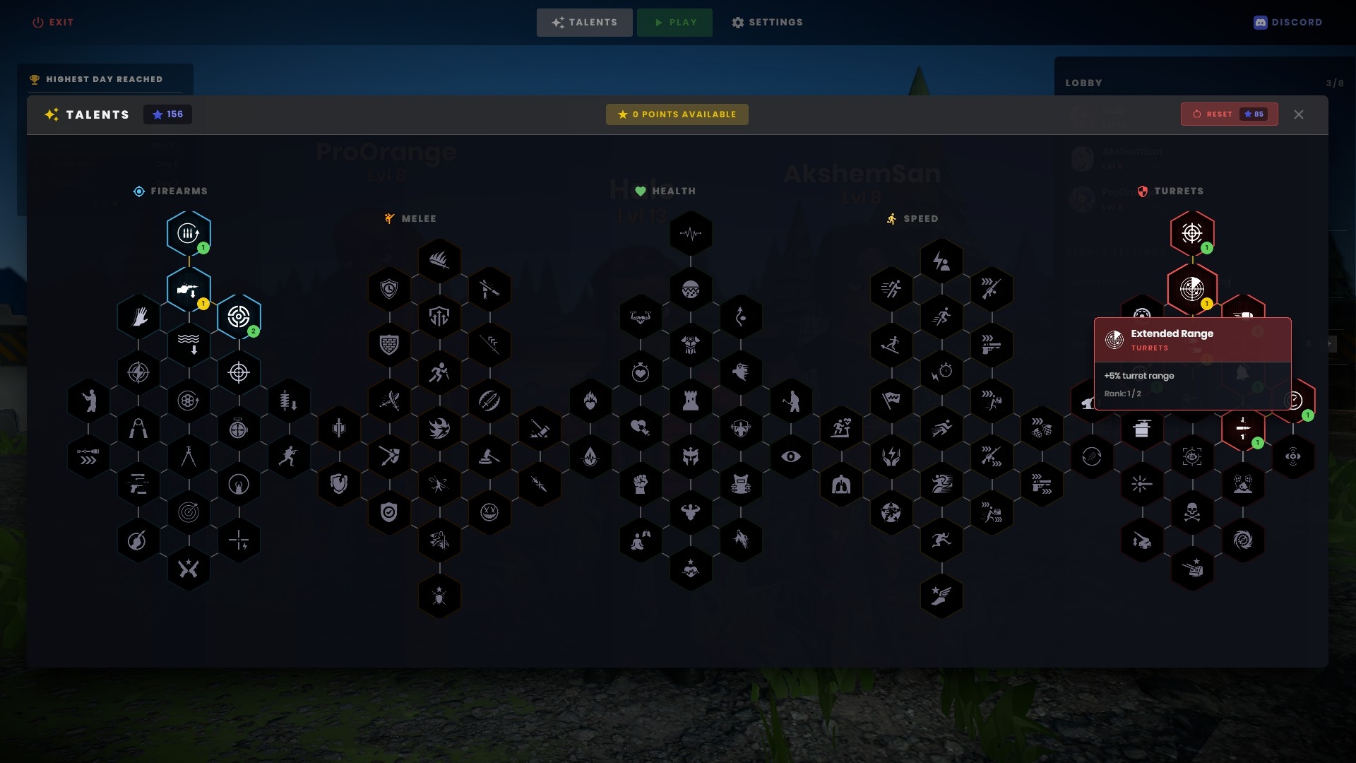 🧬 Talent Tree Level up and invest points into a hex-grid talent tree with 5 branches: Firearms, Melee, Health, Speed, and Turrets. Specialize or diversify — your build, your strategy.