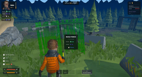 🔨 Build & Fortify Use the building hammer to place fences and repair them.