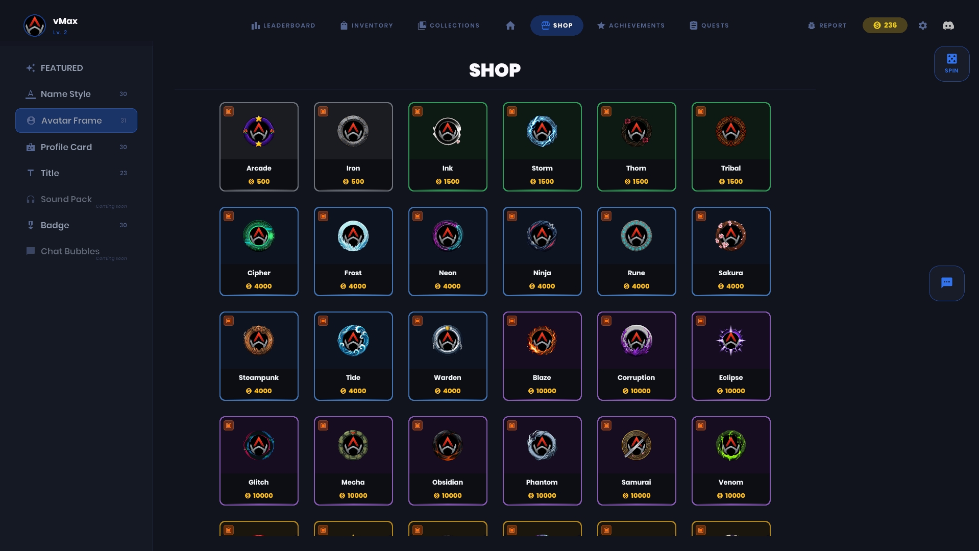 - Economy & Shop -> Avatar frames, badges, chat bubbles, loot boxes, trading