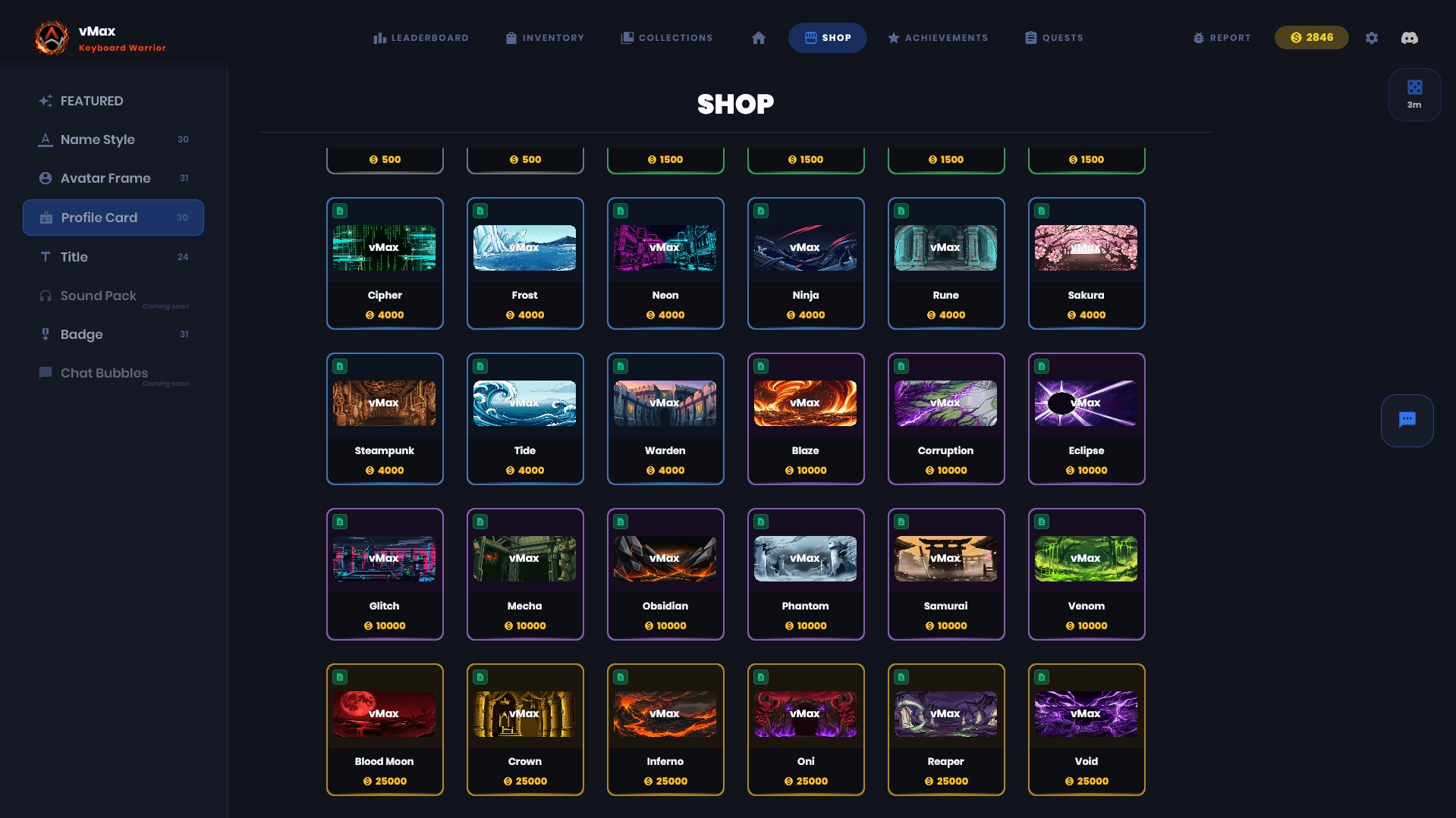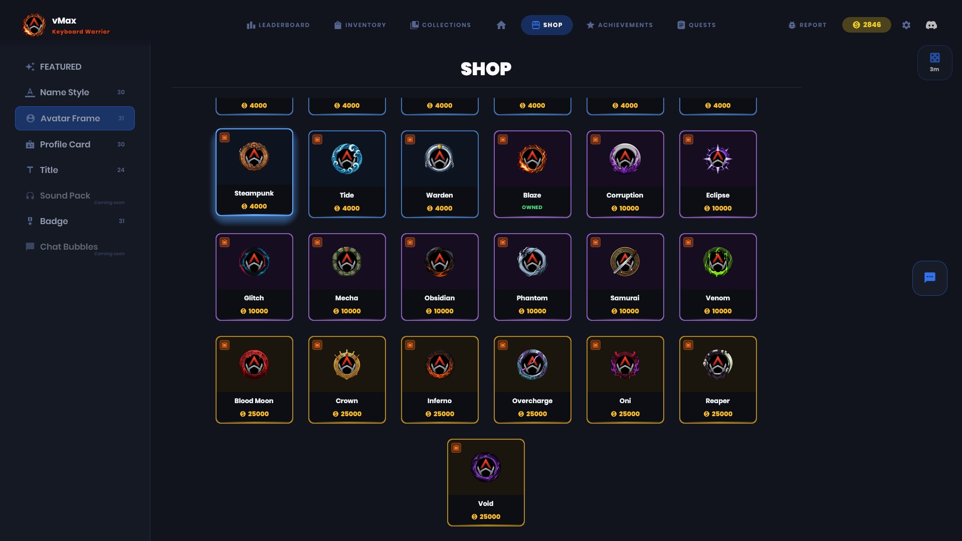 - Economy & Shop -> Avatar frames, badges, chat bubbles, loot boxes, trading