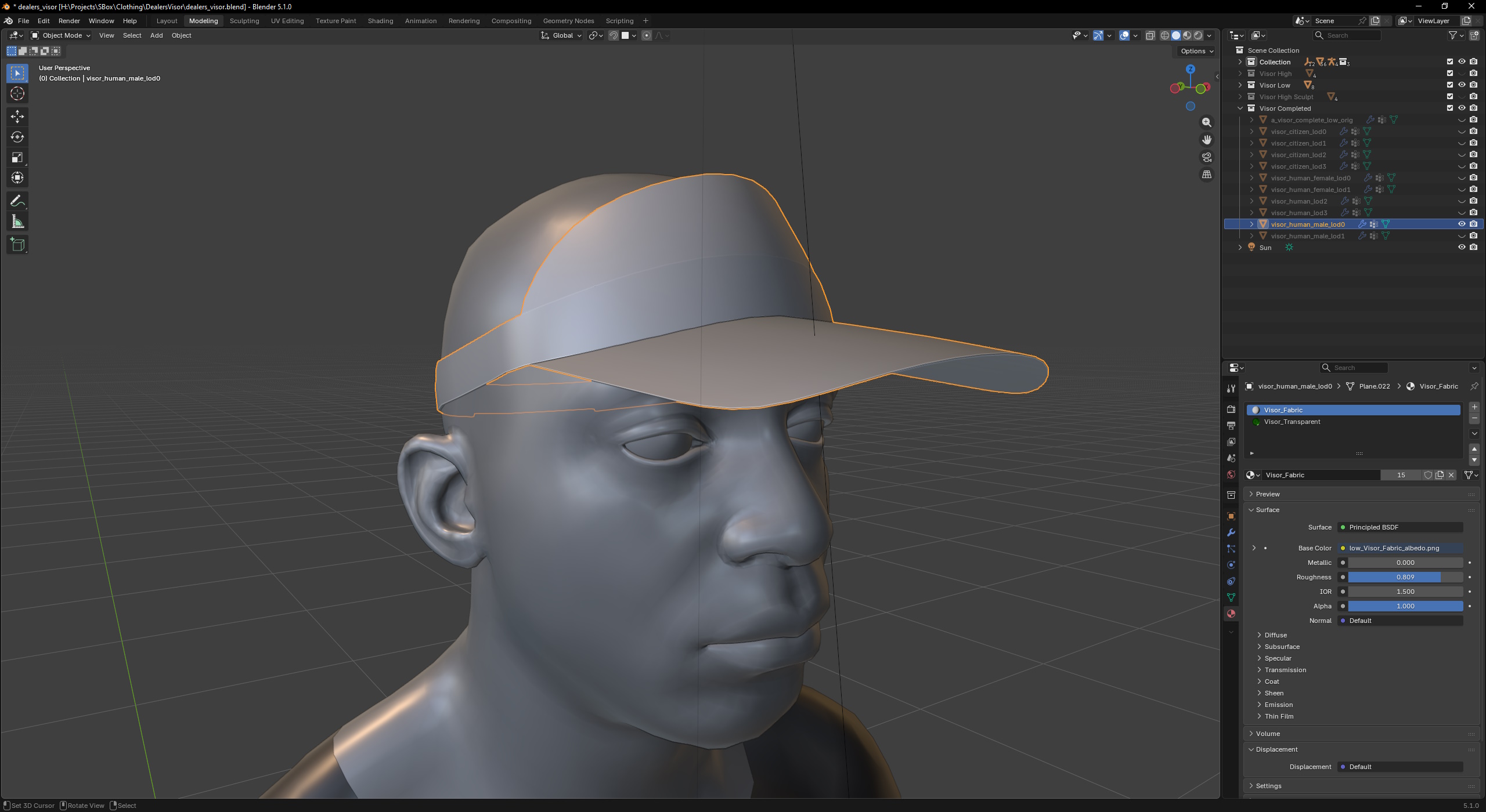Human models use different LOD0 and LOD1 for male/female (due to slightly different head shapes), LOD2 and LOD3 are the same for both. LOD3 completely drops the transparent material on both Citizen and Human versions