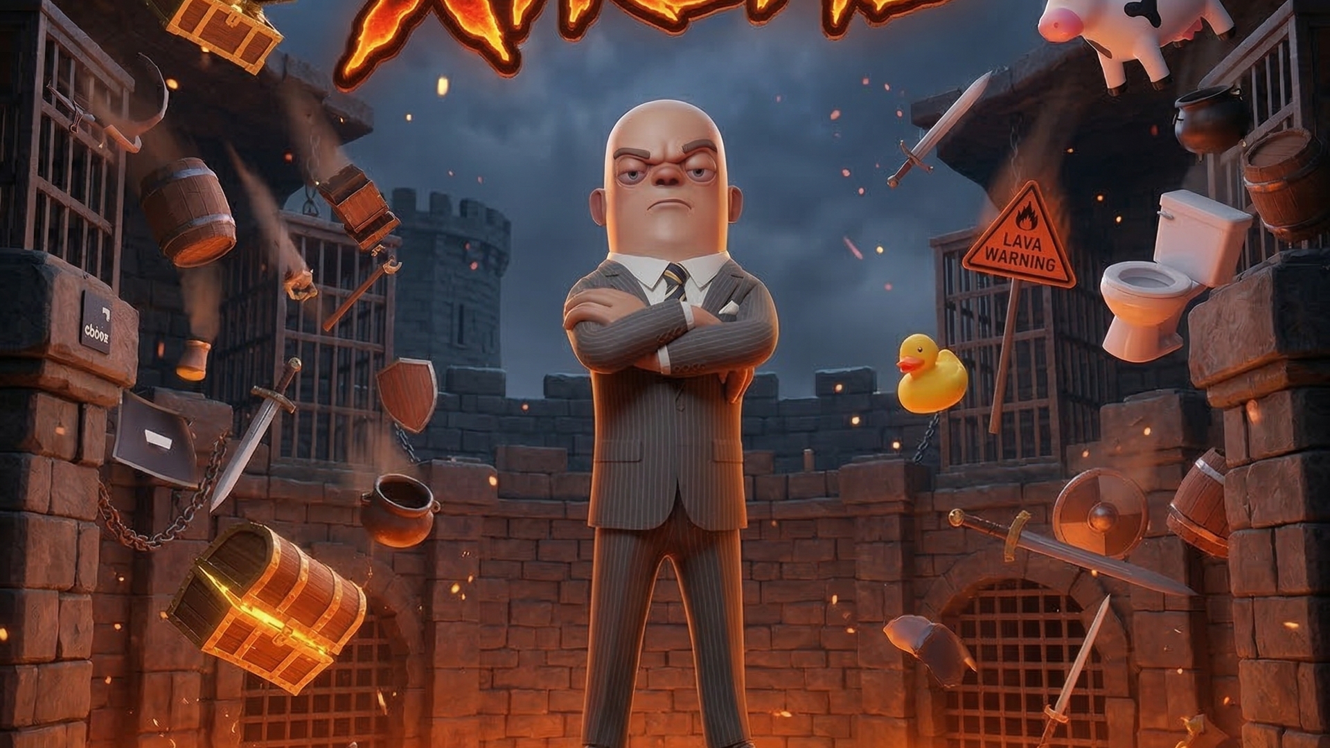 In The Floor is Lava, there are no safe zones. Your only hope for survival comes from above as random props drop into the arena. Time your jumps, secure the high ground, and don't look down.