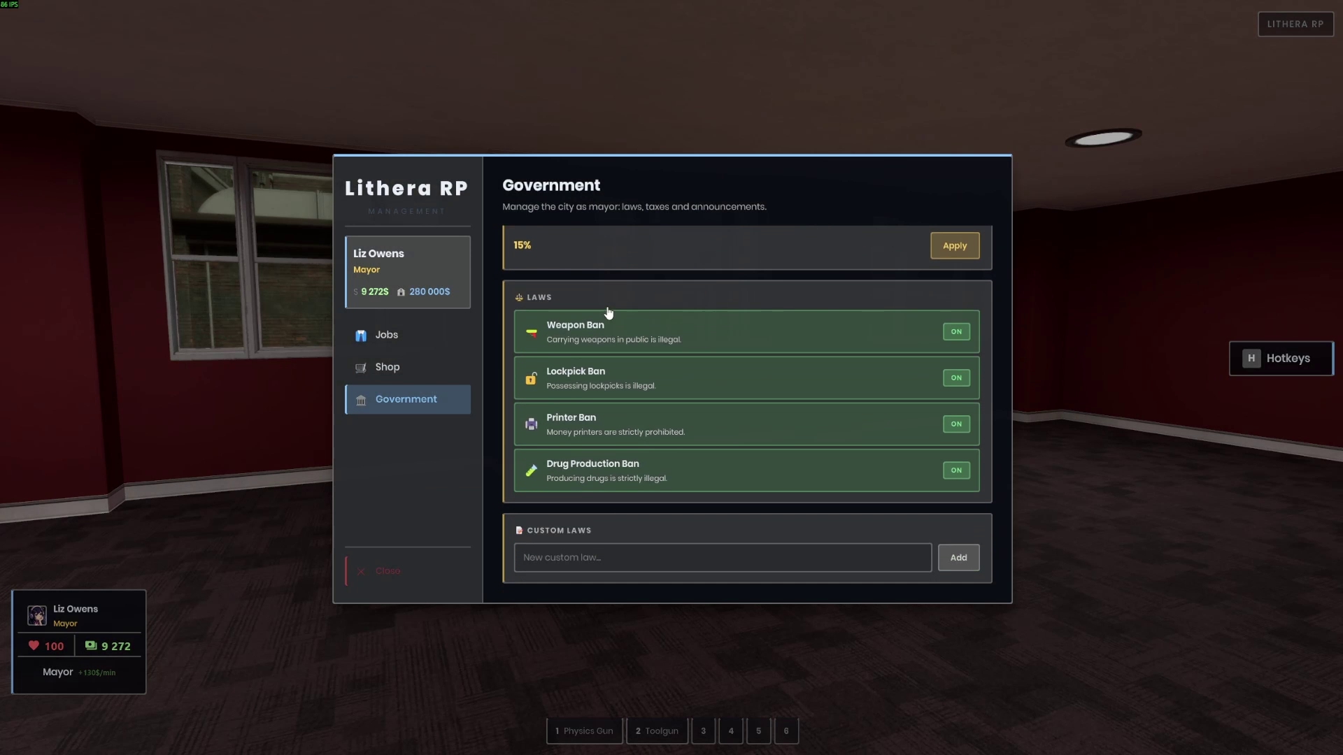 LitheraRP is a roleplay gamemode for s&box, inspired by DarkRP but built around depth: every system feeds into every other one.