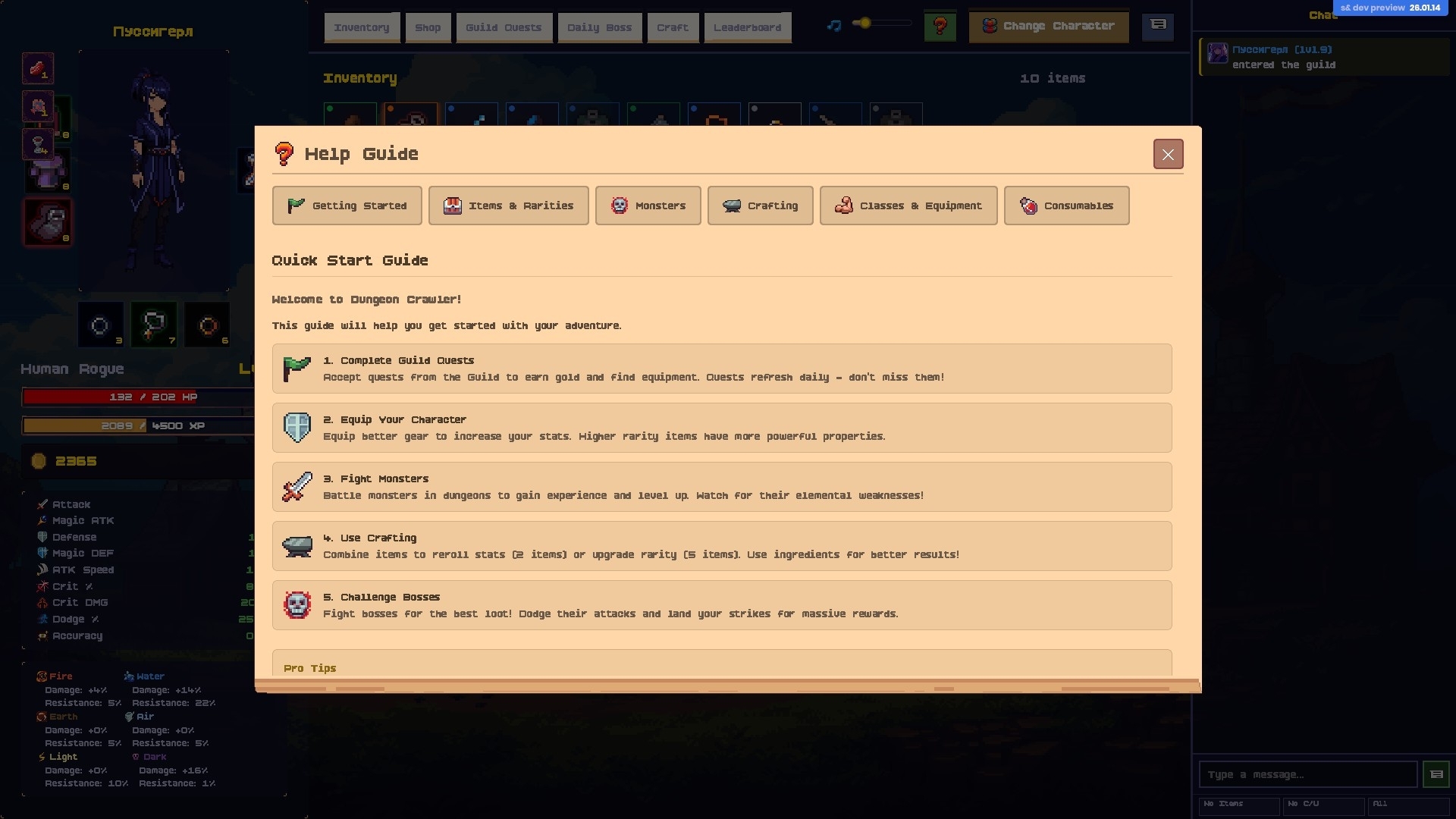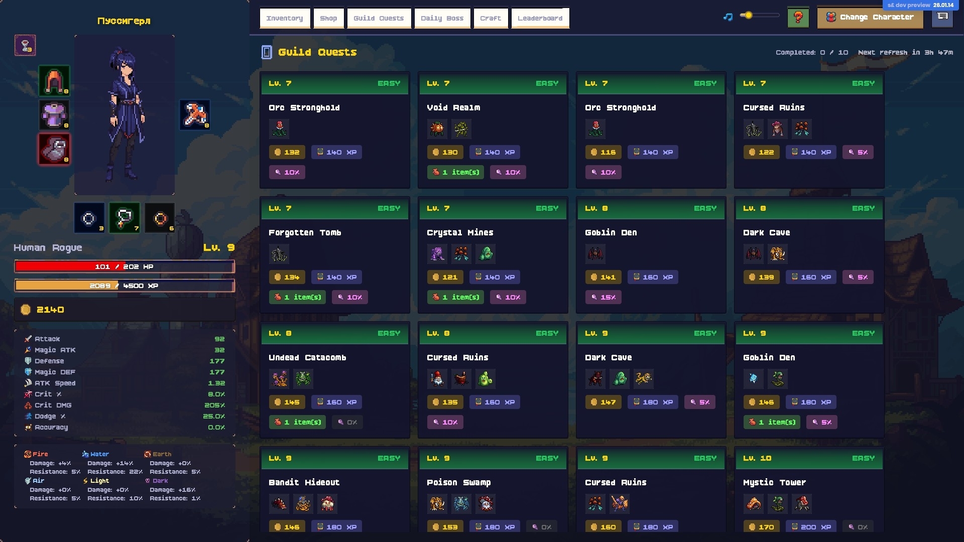 Embark on an epic pixel-art adventure where you explore dungeons, craft legendary gear, and build your ultimate character in a dangerous world filled with monsters and treasures!