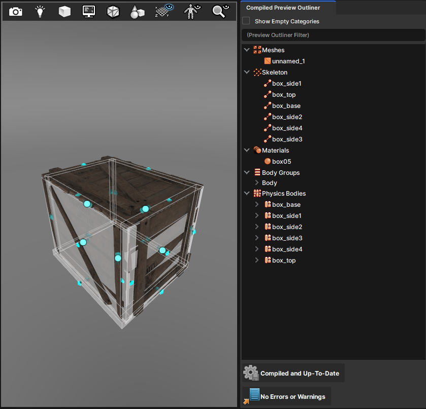 Back to our box made up of a lot of boards. What if we opened it up inside of Blender/Maya, made it so each board had it's own bone? Then inside of model doc we create a physics shape (a box in our case) that is the size of each board. Then we spawn it in to replace our box and turn the physics on.