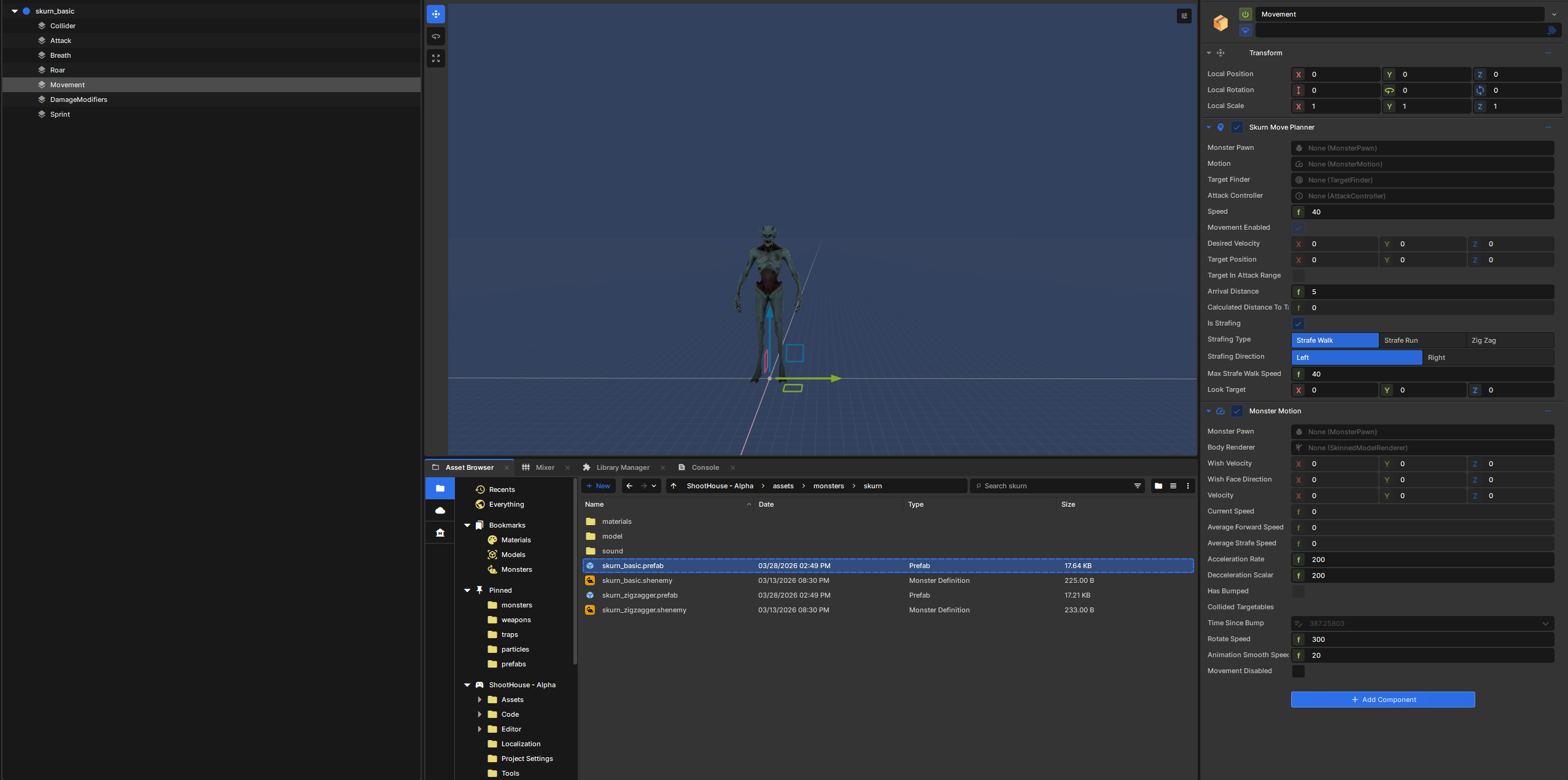 I knew I would have lots of different monsters, many of which would share behavior, but not everything would be the same. As such I decided to try and make my monster logic as modular as possible. I didn't get it perfect at first but eventually I landed on a sort of formula that worked really well.