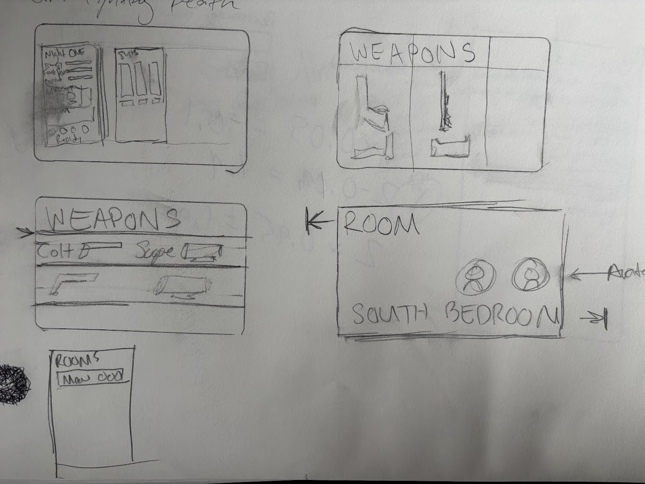 Because Shoothouse has an entire day section of the game which I knew was going to be mostly menus, I wanted to make the UI interesting. I wanted to explore how I could make the game feel like a movie, but also be mostly menus. It led me to planning for the UI to by dynamic in size, small when it's a menu, and then when it's a whole page, trying to never take up more than 50-70% of the screen.