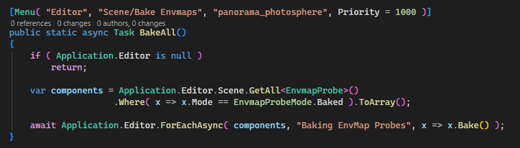 So now you can call Scene.Editor.GetSceneFolder() to get a class to interact with this folder in the editor. You can generate and save resources in there, which your scene will reference and use. For example, when we bake cubemap textures we save them in this folder.