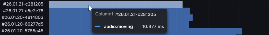 We improved our audio performance by optimizing the occlusion system, binaural spatialization, and memory management. In our audio benchmark scenes, this resulted in a solid 20–30% reduction in frame time.