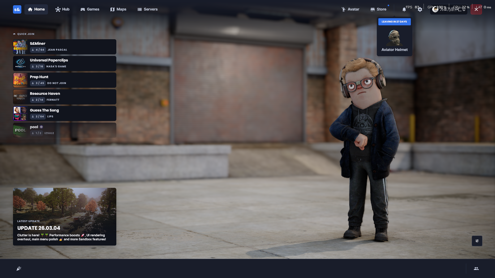 Our crash rates have been stabilizing around 1-2% with less and less crashes every week.And finally we continue to push on with Sandbox features as well as experimenting with what we can do differently to Garry's Mod.