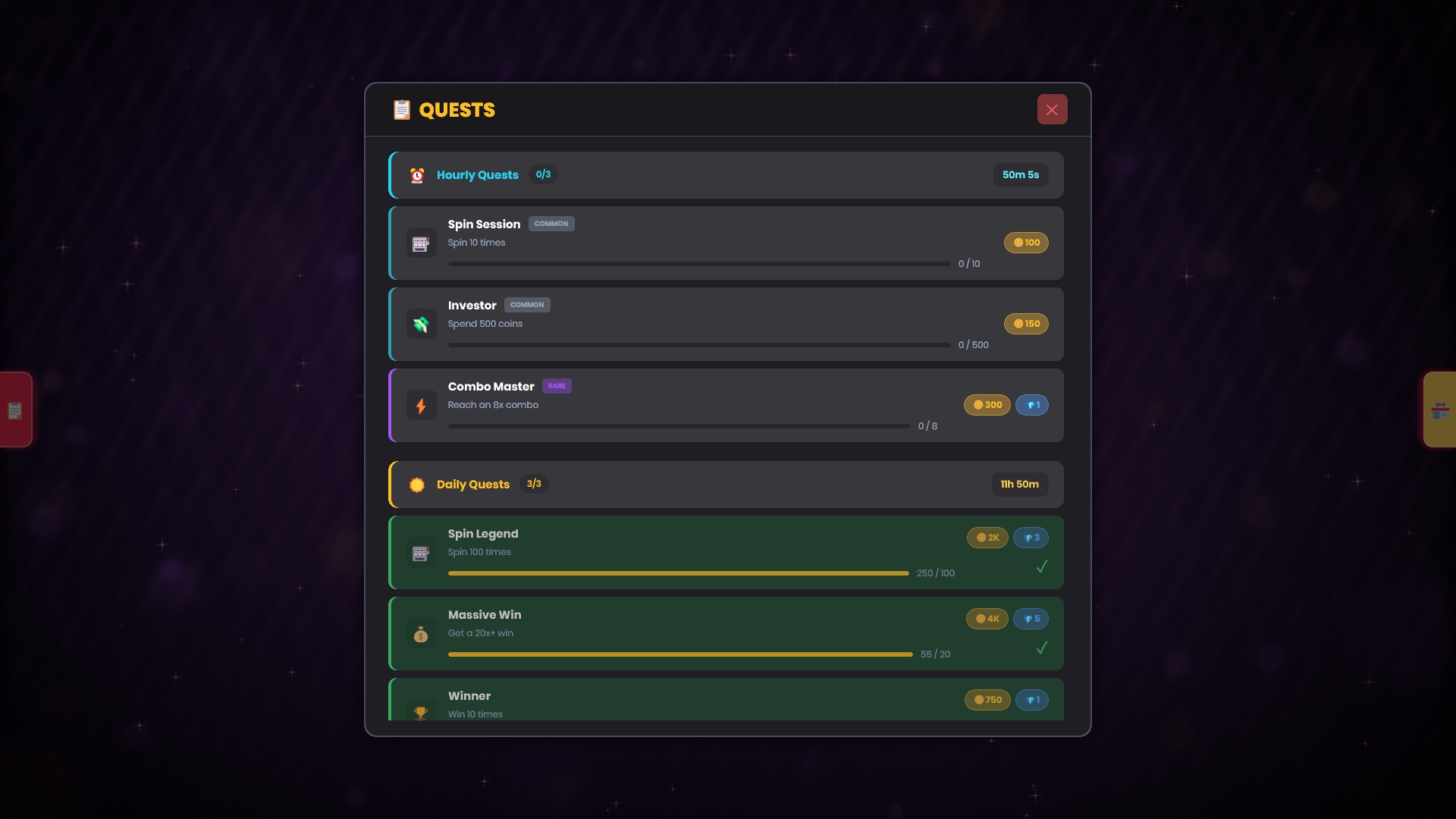 - Daily Quests - Complete challenges to earn gems and coins