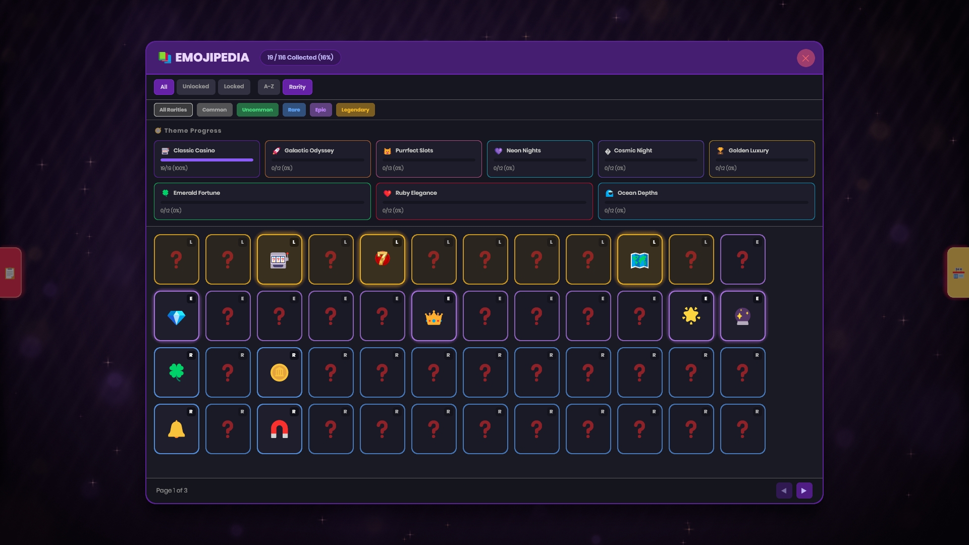 - 9 Visual Themes - From Classic Casino to Galactic Odyssey, Purrfect Cats, Neon Nights, and premium palettes like Golden Luxury and Ocean Depths