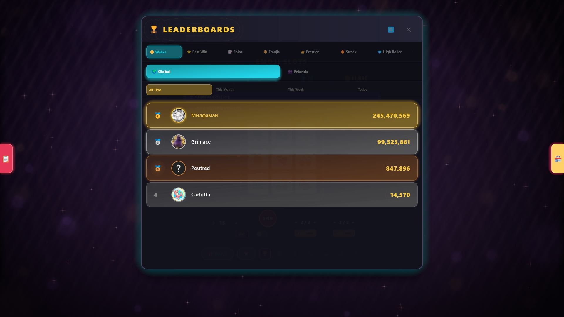 - Leaderboards - Compete for the highest wallet, best win, and longest streak
