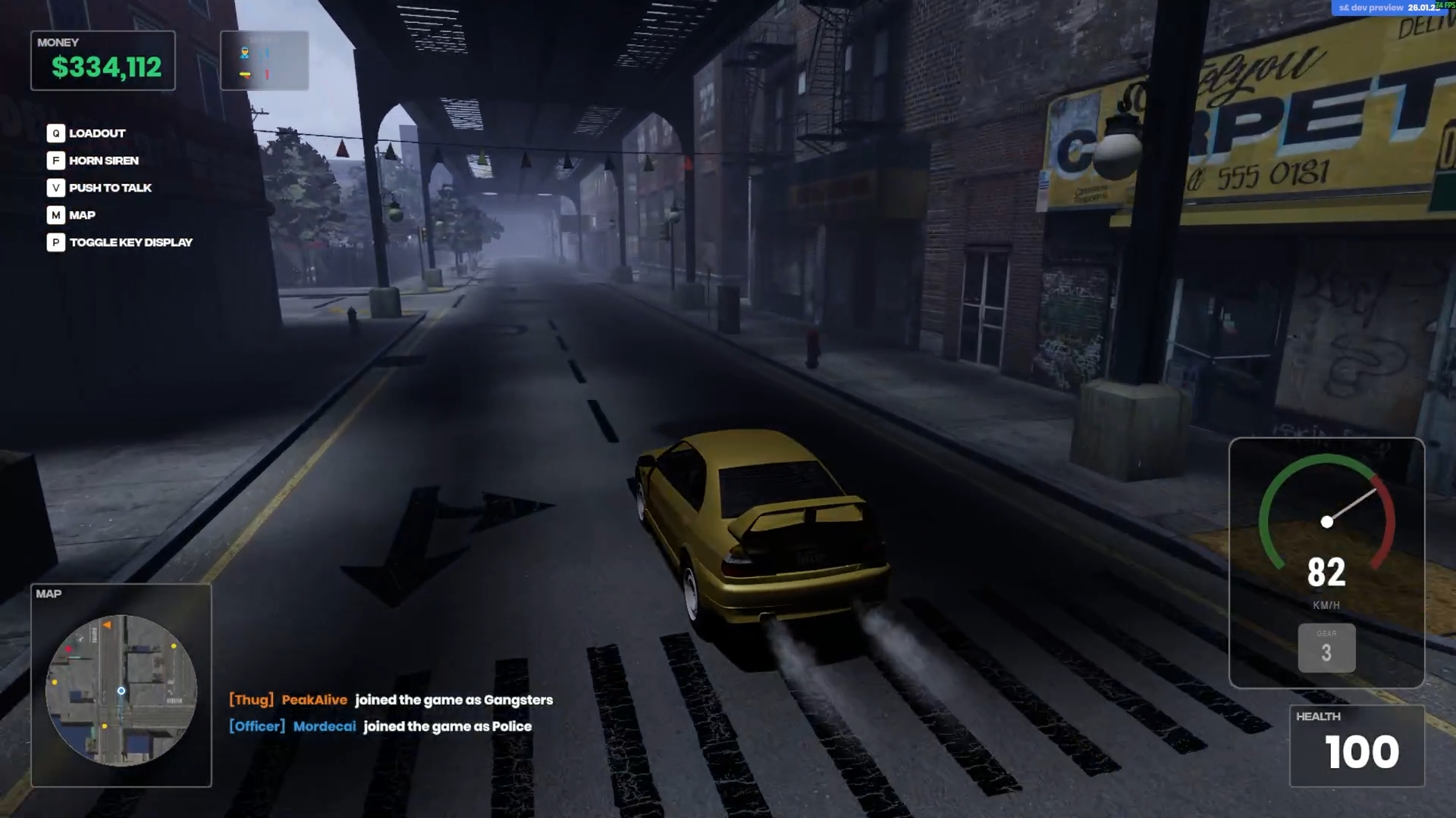 Choose your own path as a criminal or law enforcement and play alongside others in real time. Pull off heists, move illegal goods, patrol the streets, respond to crime, or simply exist in the city and see what unfolds. There are no rounds or resets. The world keeps going, and player decisions drive everything.
