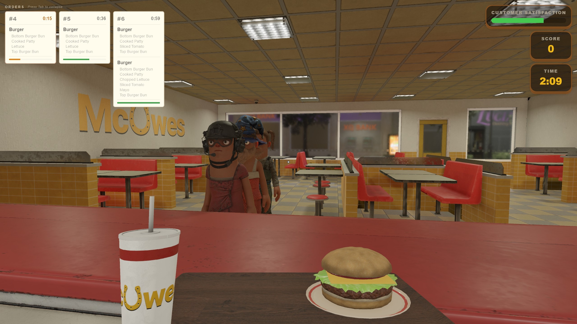 Complete orders for as long as you can before your satisfaction meter hits 0 as the orders become increasingly more difficult.