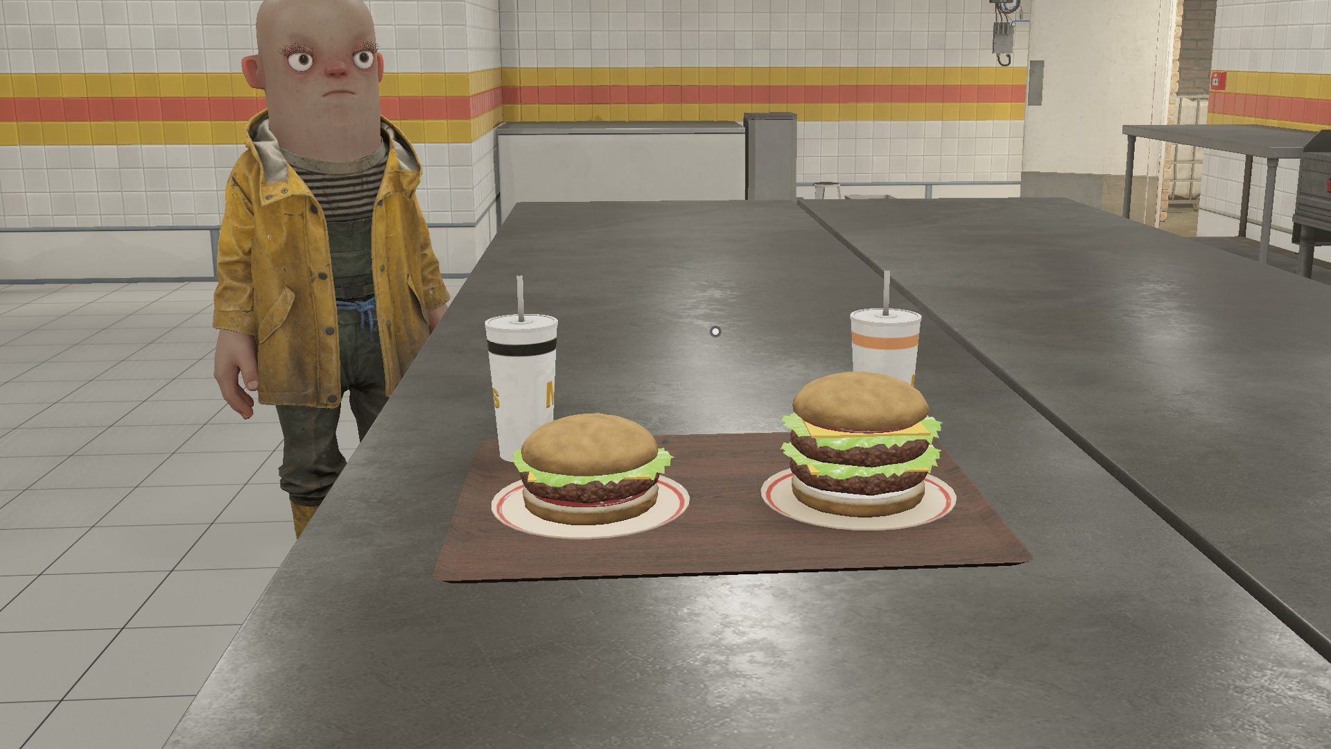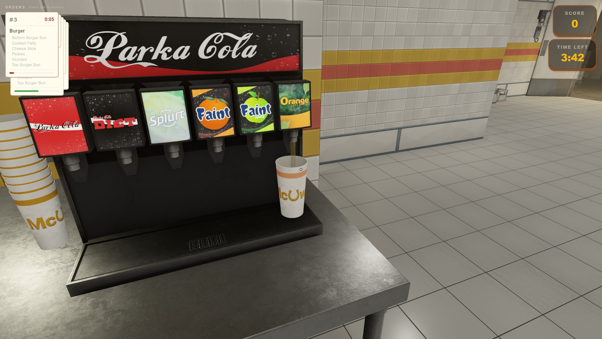 - Press E on the order counter to serve to the customer