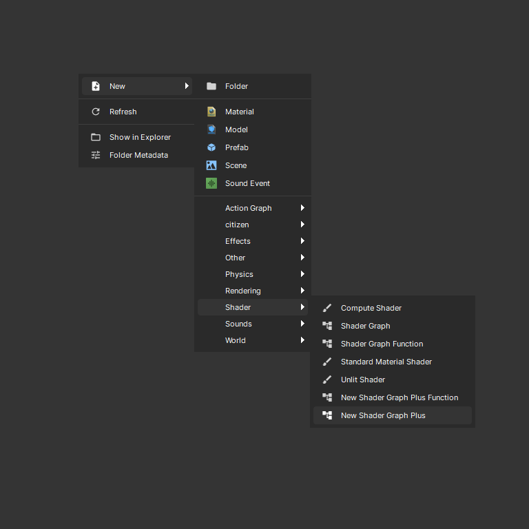 Moved AssetBrowser Create New Asset action for Graph And Subgraph assets to "New/Shader"