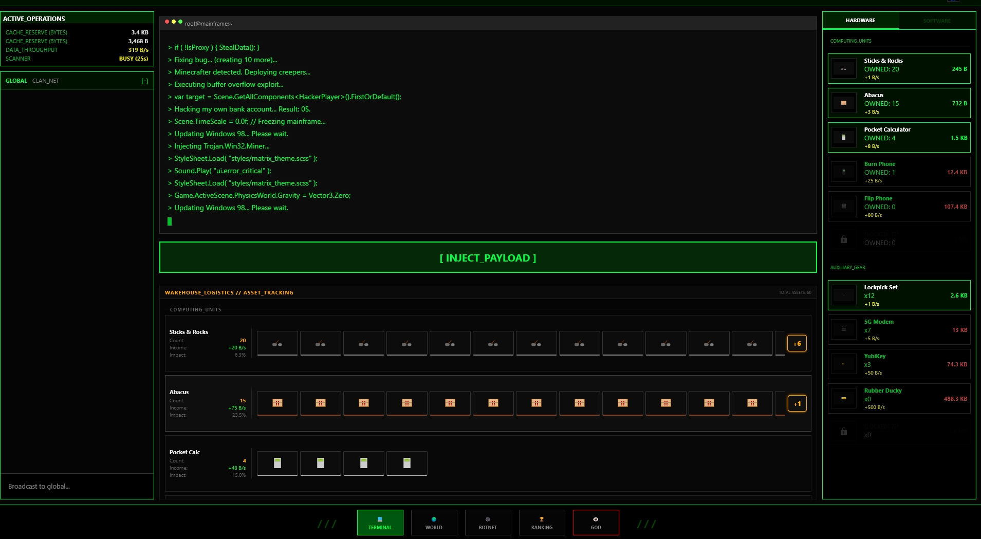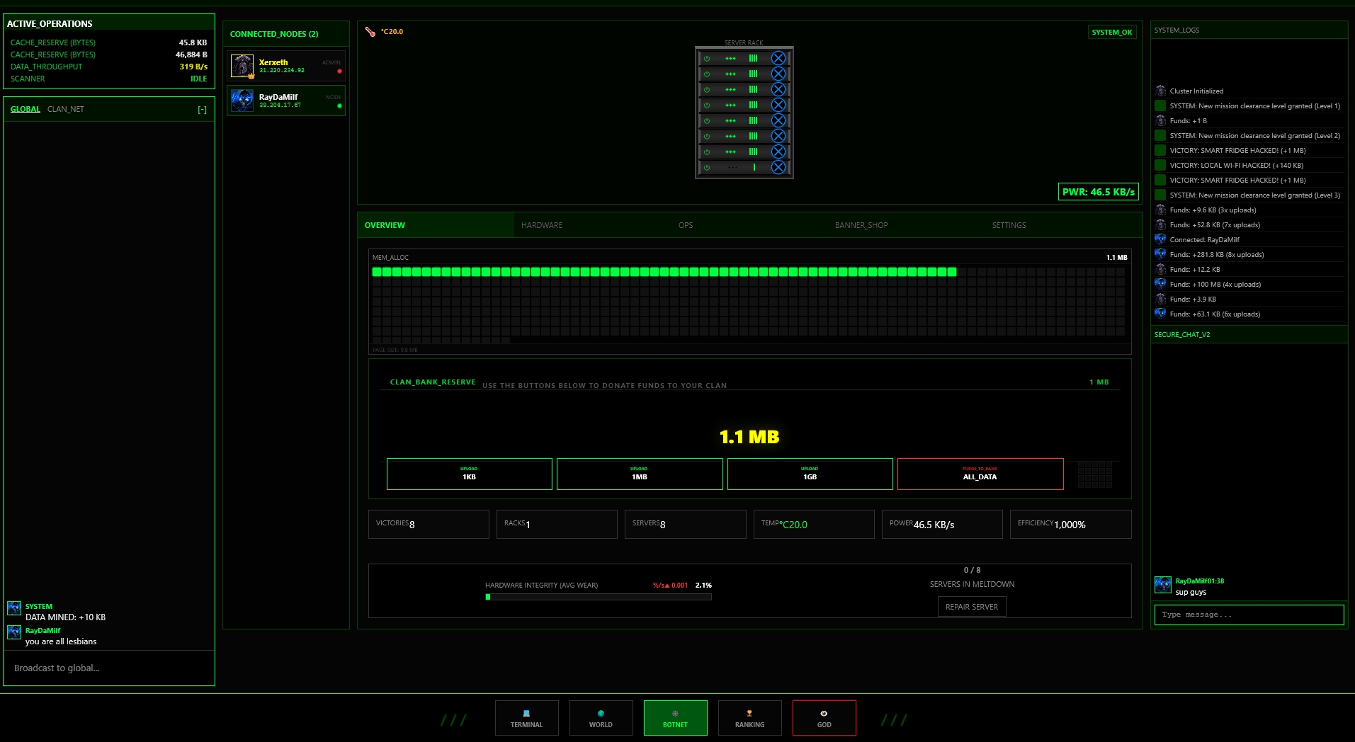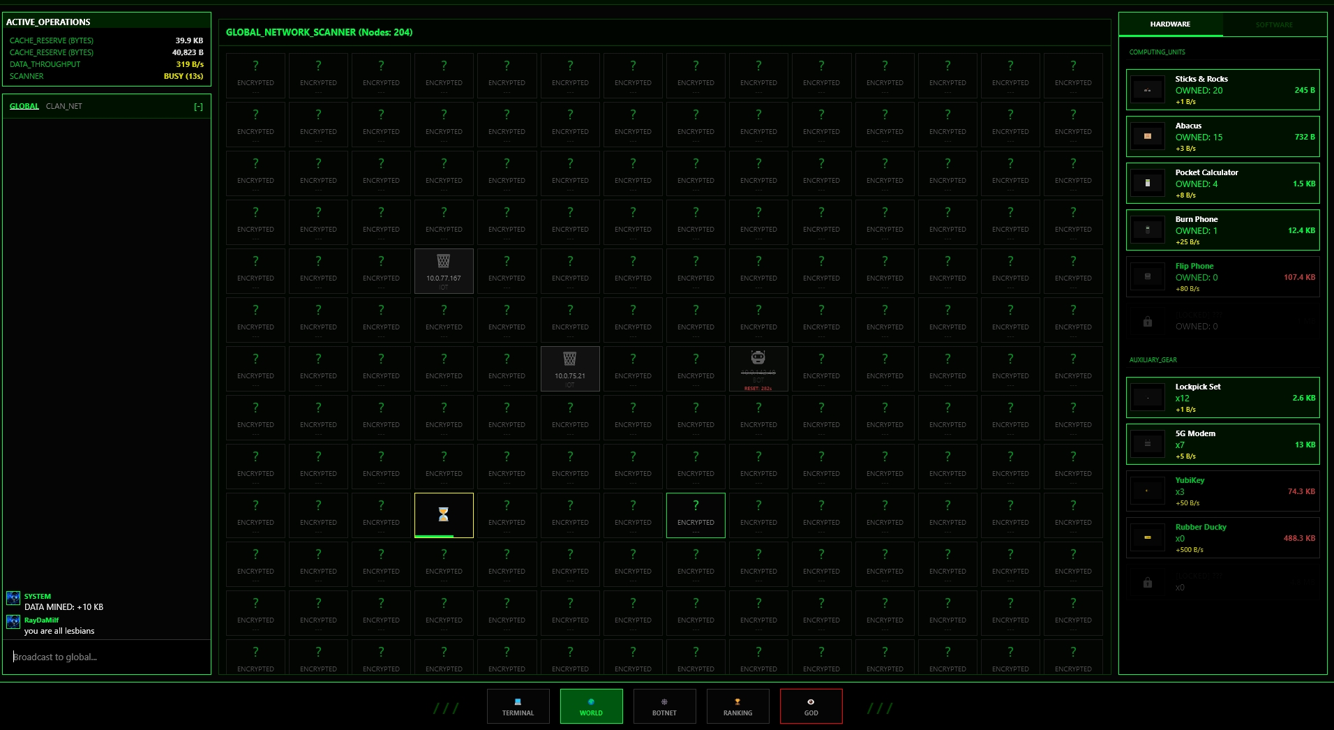 create your clan or join a clan and atack other clans to steal their data