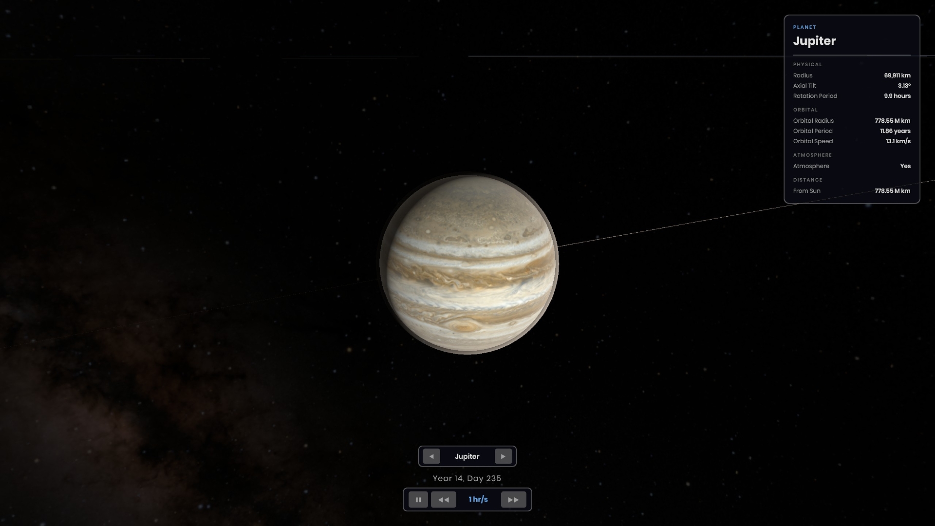 It's a work in progress game, no features yet, just a simulation with working orbits, planets infos etc... I'm planning features to launch asteroids, spawn other planets etc...