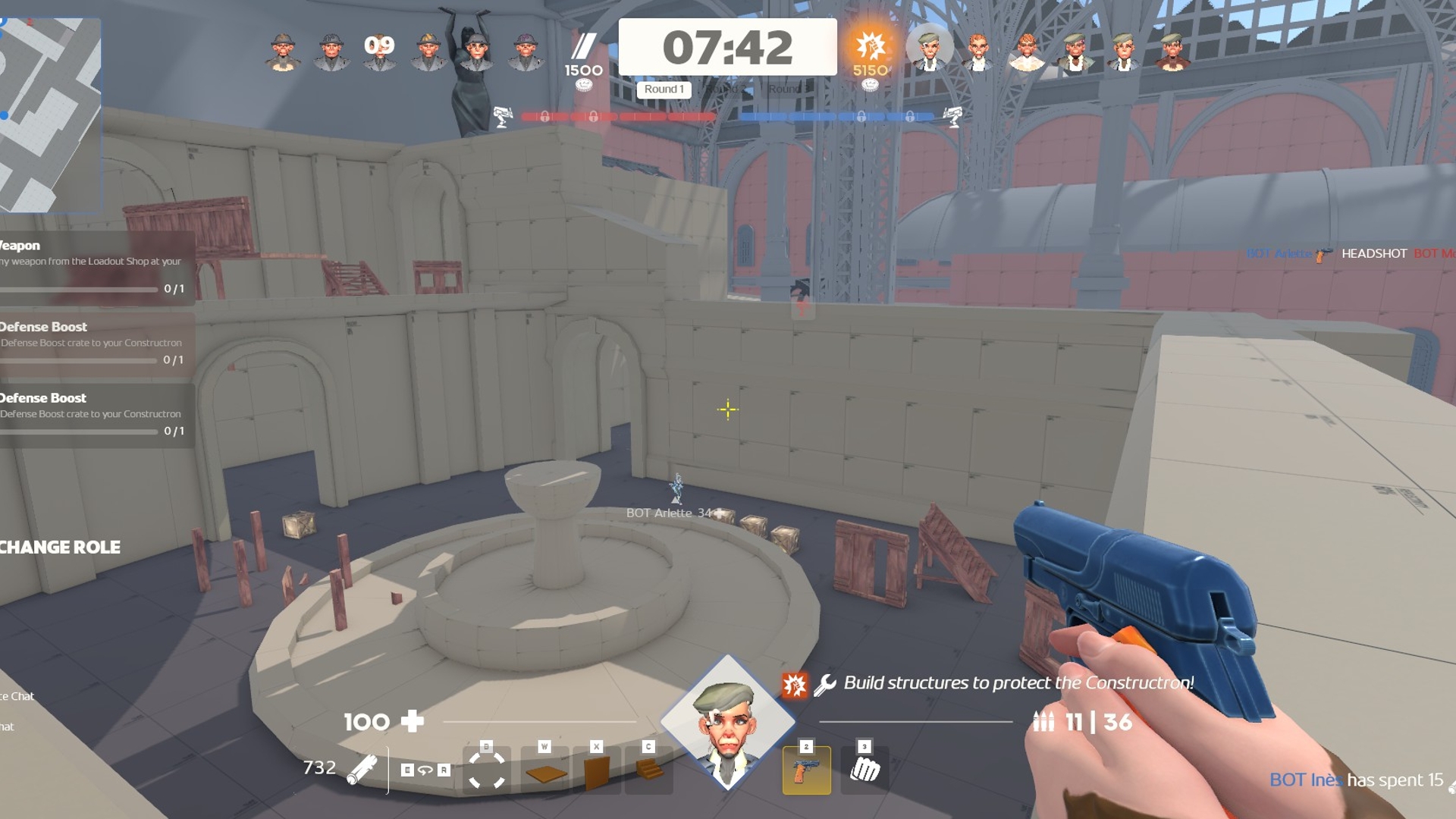 Welcome to Monkey Fortress! A 6 vs 6 player shooter. Gather resources, build your defenses, and smash the enemy base!