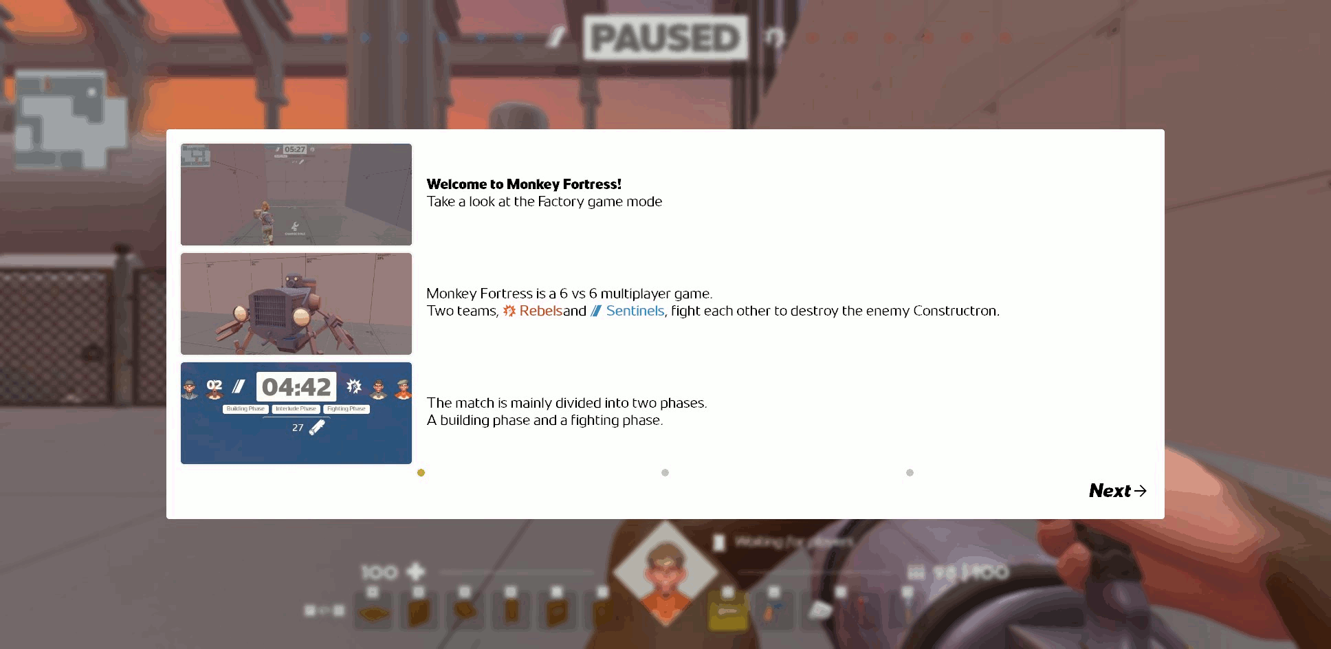 During the building round, bots act according to their role, helping guide the player on what to do.